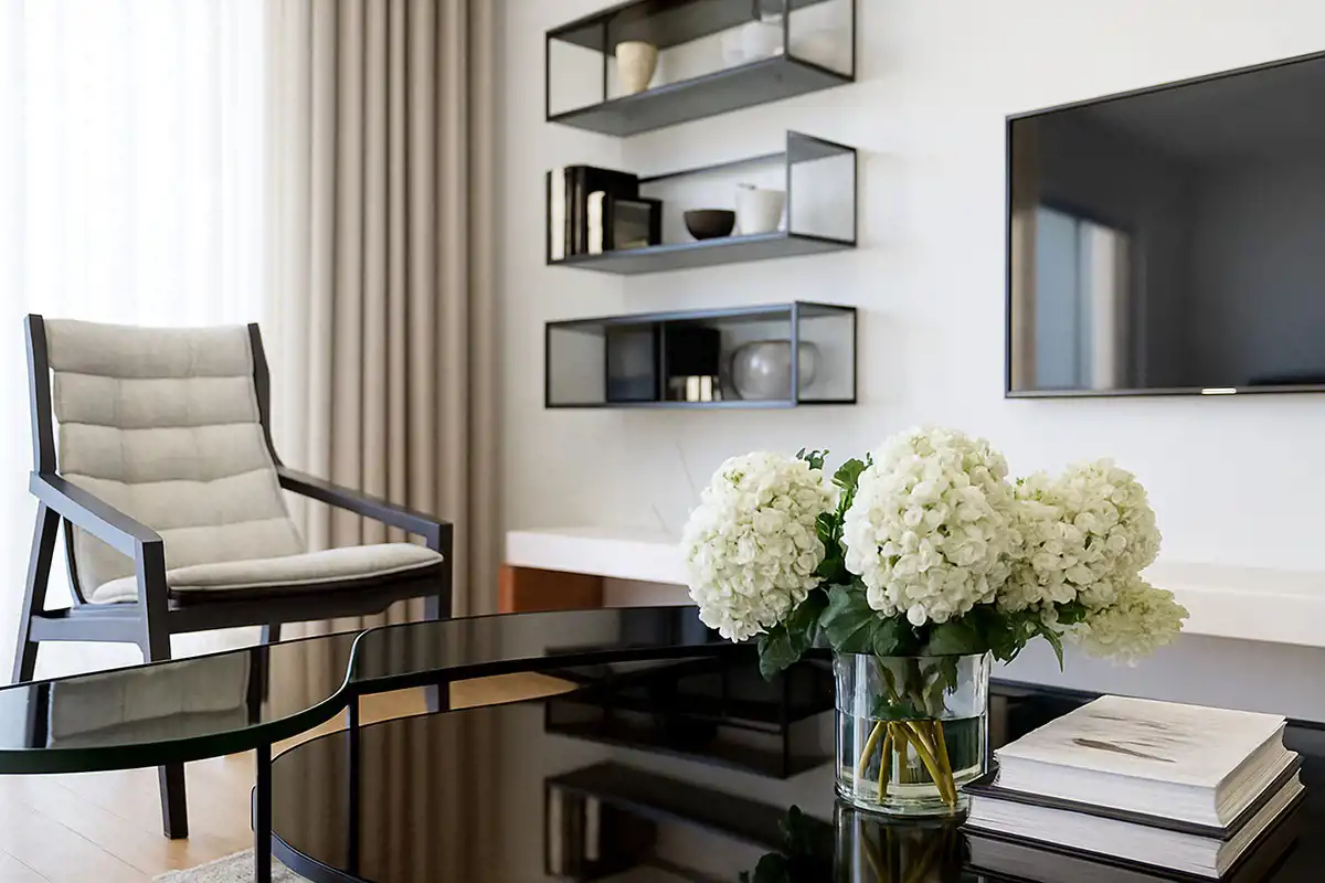 Przestronne wnętrza, jasne i pełne światła, łączą nowoczesny design z wysokiej klasy materiałami.