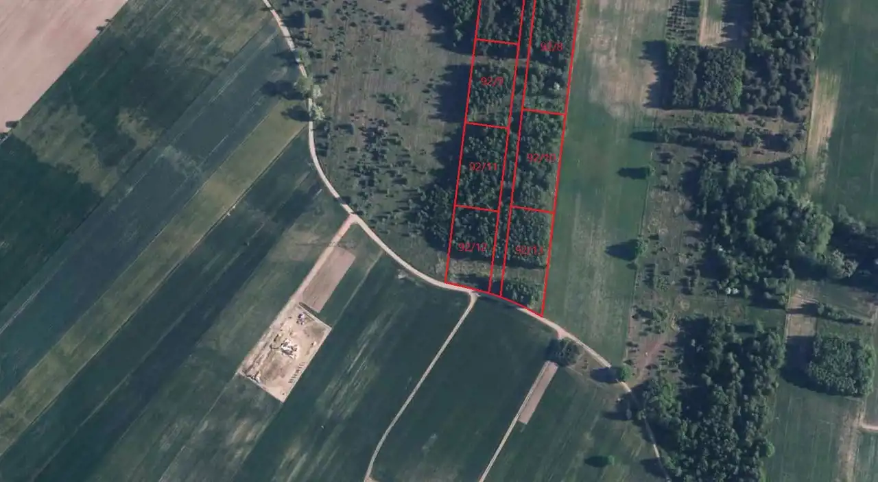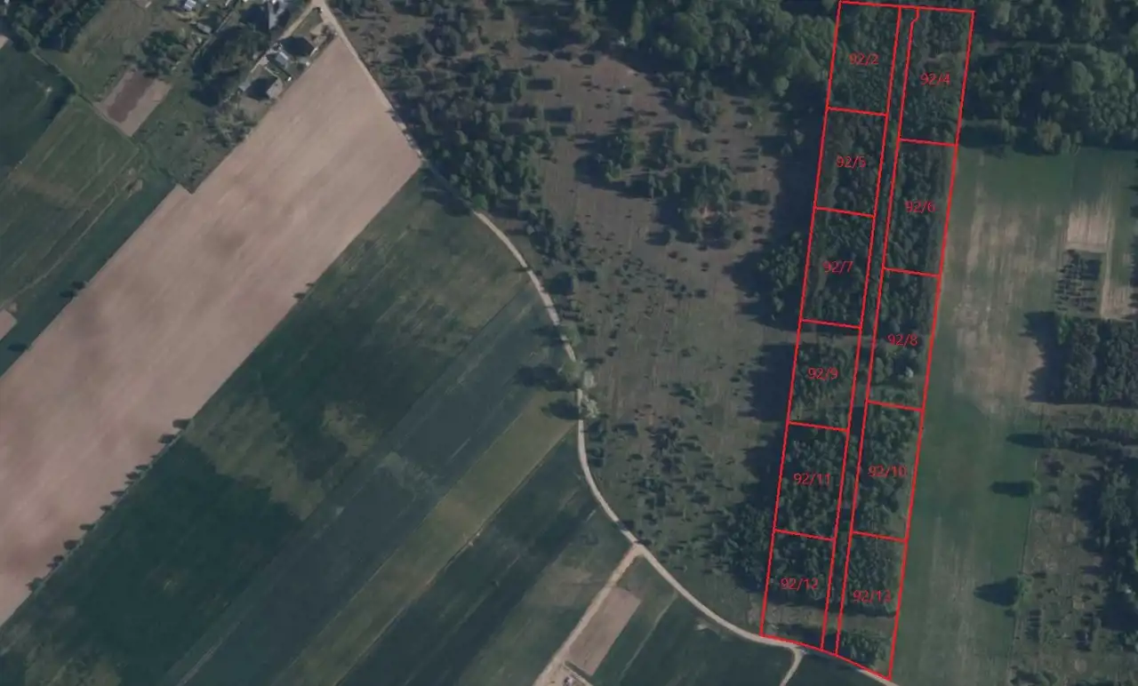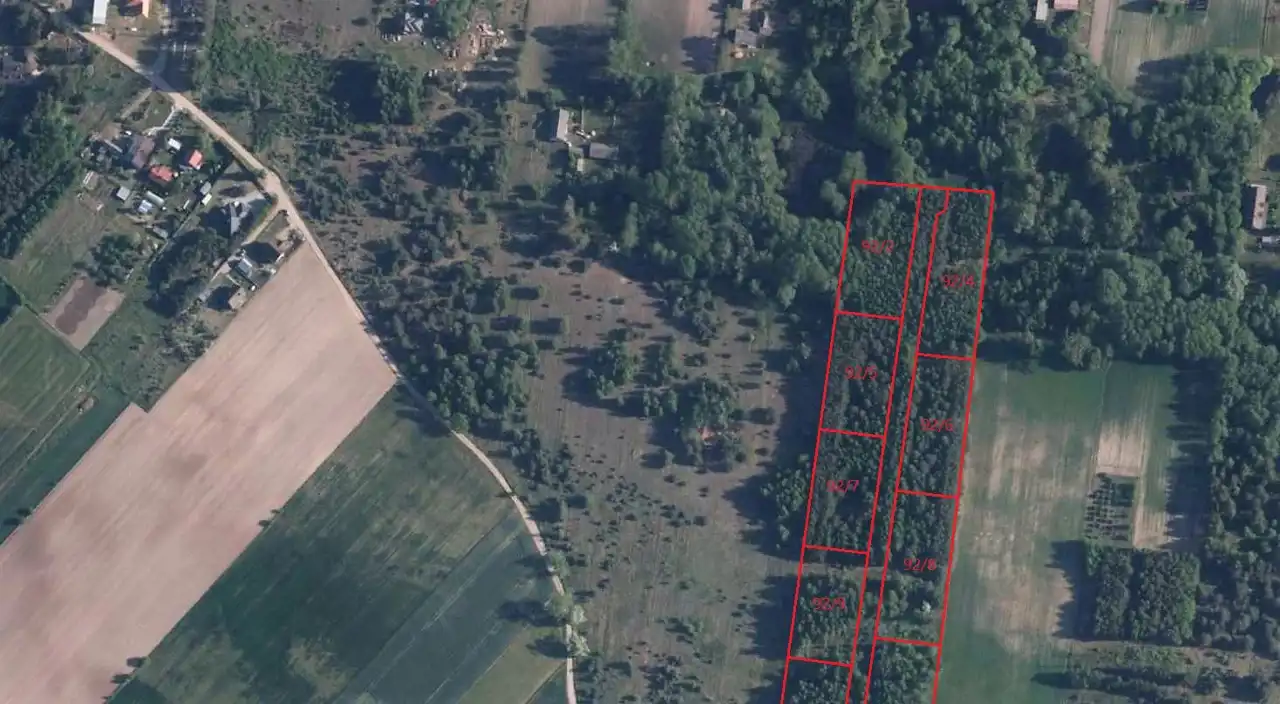 Działka podzielona na 11 działek gruntu, każda po ok. 3000 mkw.