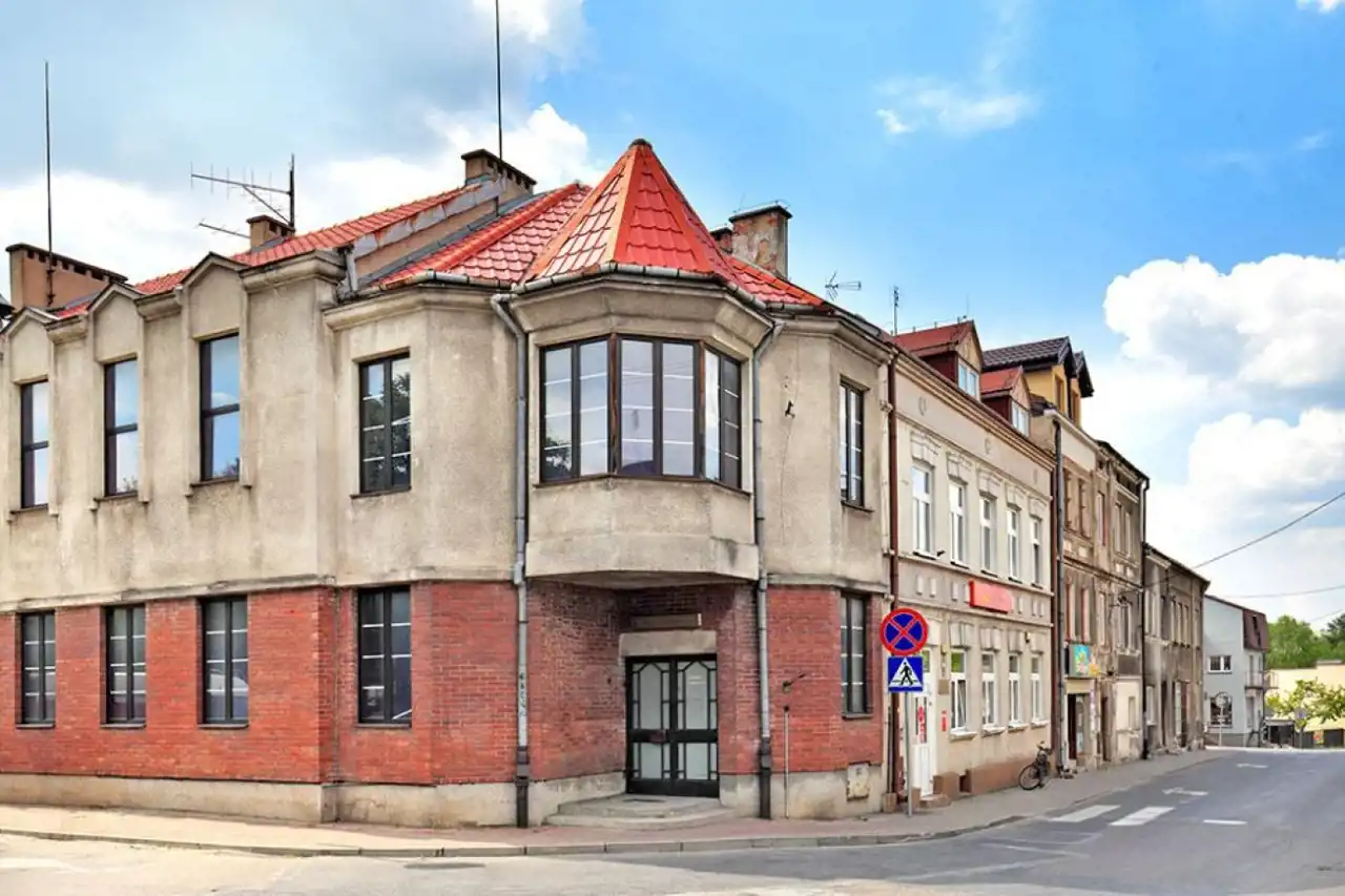 Na terenie nieruchomości znajduje się budynek biurowo-techniczny o powierzchni użytkowej 296,95 m2 i powierzchni zabudowy 199,5 m2. Budynek murowany trzykondygnacyjny (piwnica, parter, piętro oraz strych) podpiwniczony. Budynek narożny w ścisłej zabudowie, sąsiaduje z dwoma innymi budynkami.