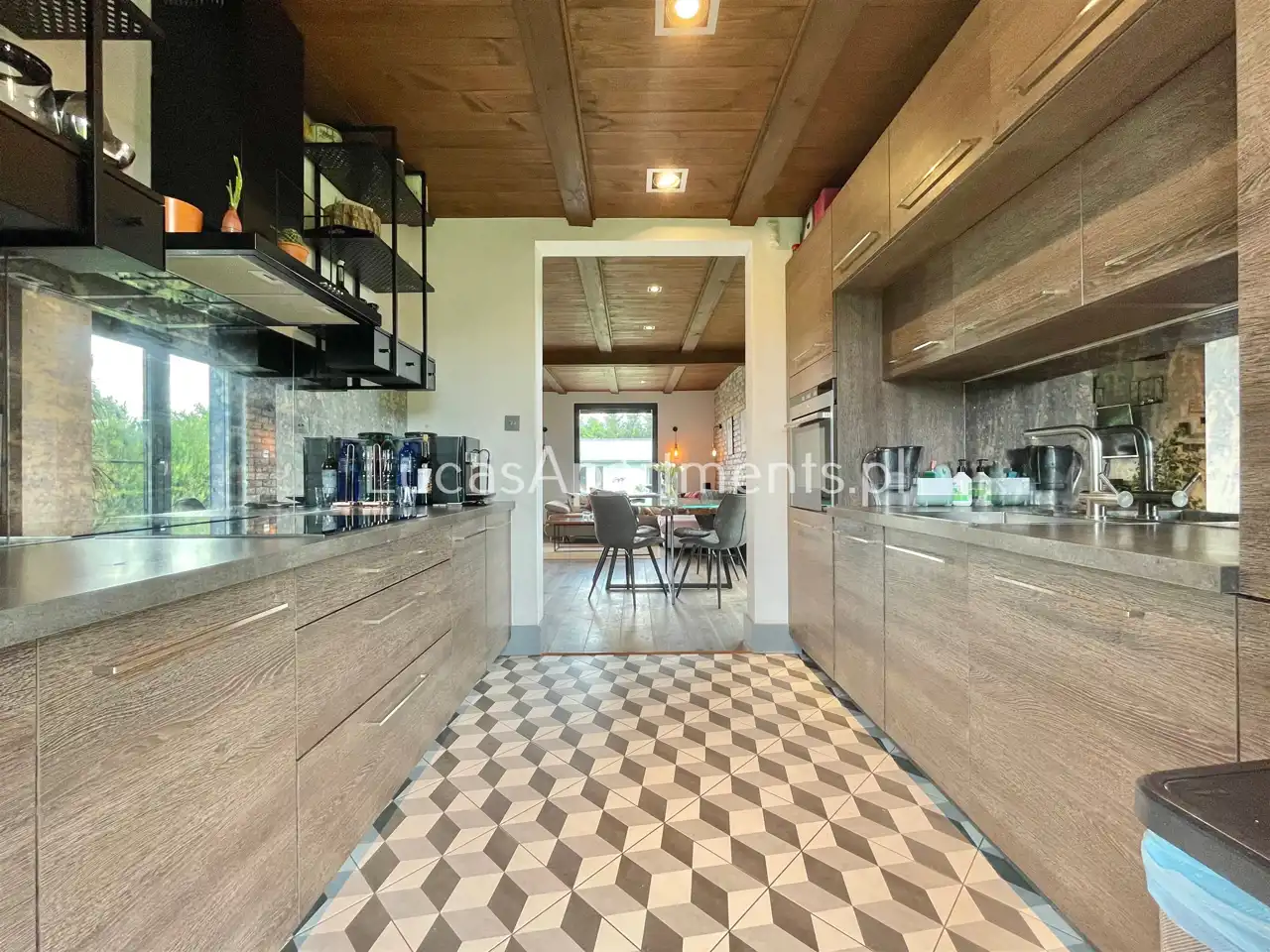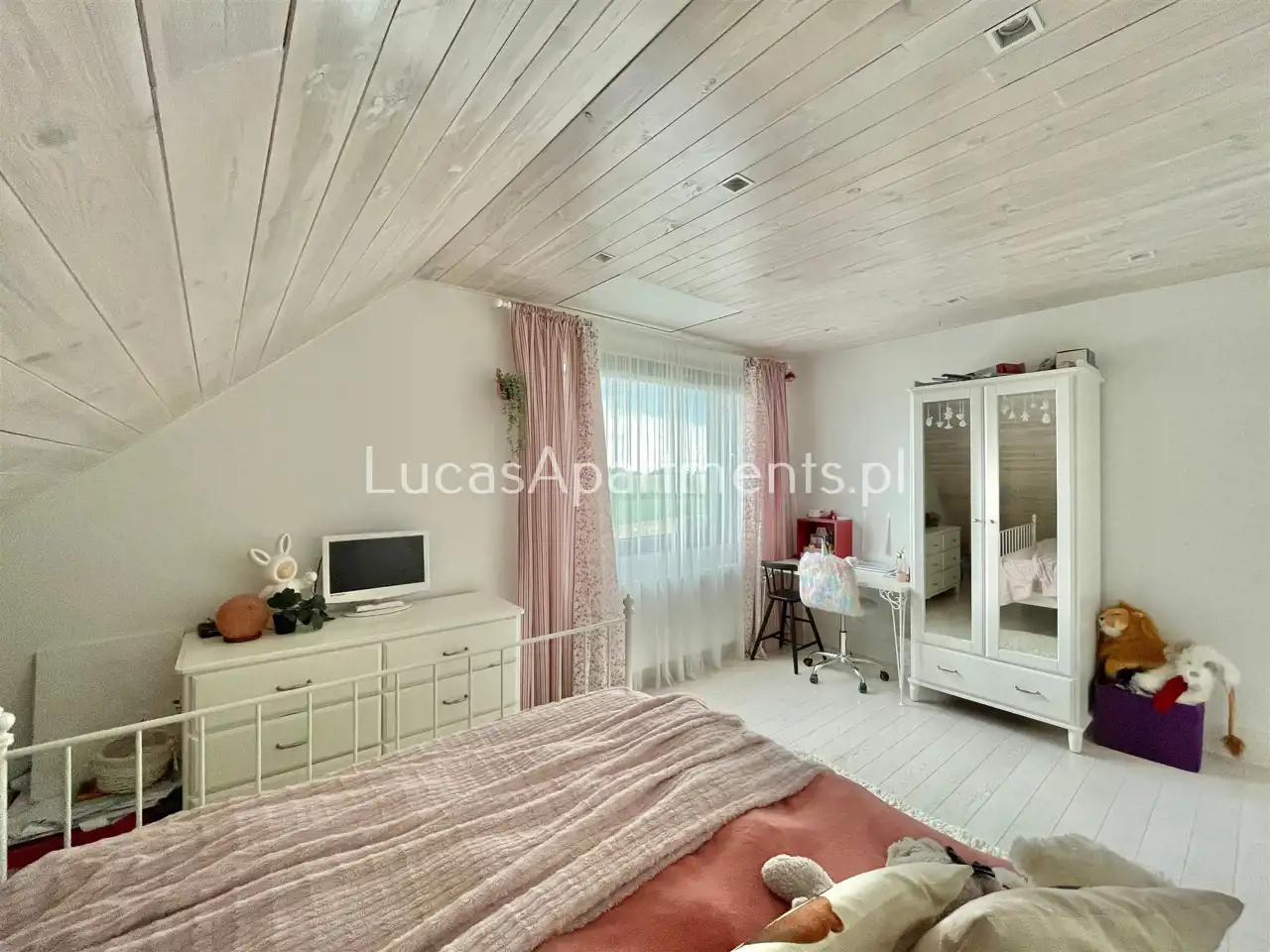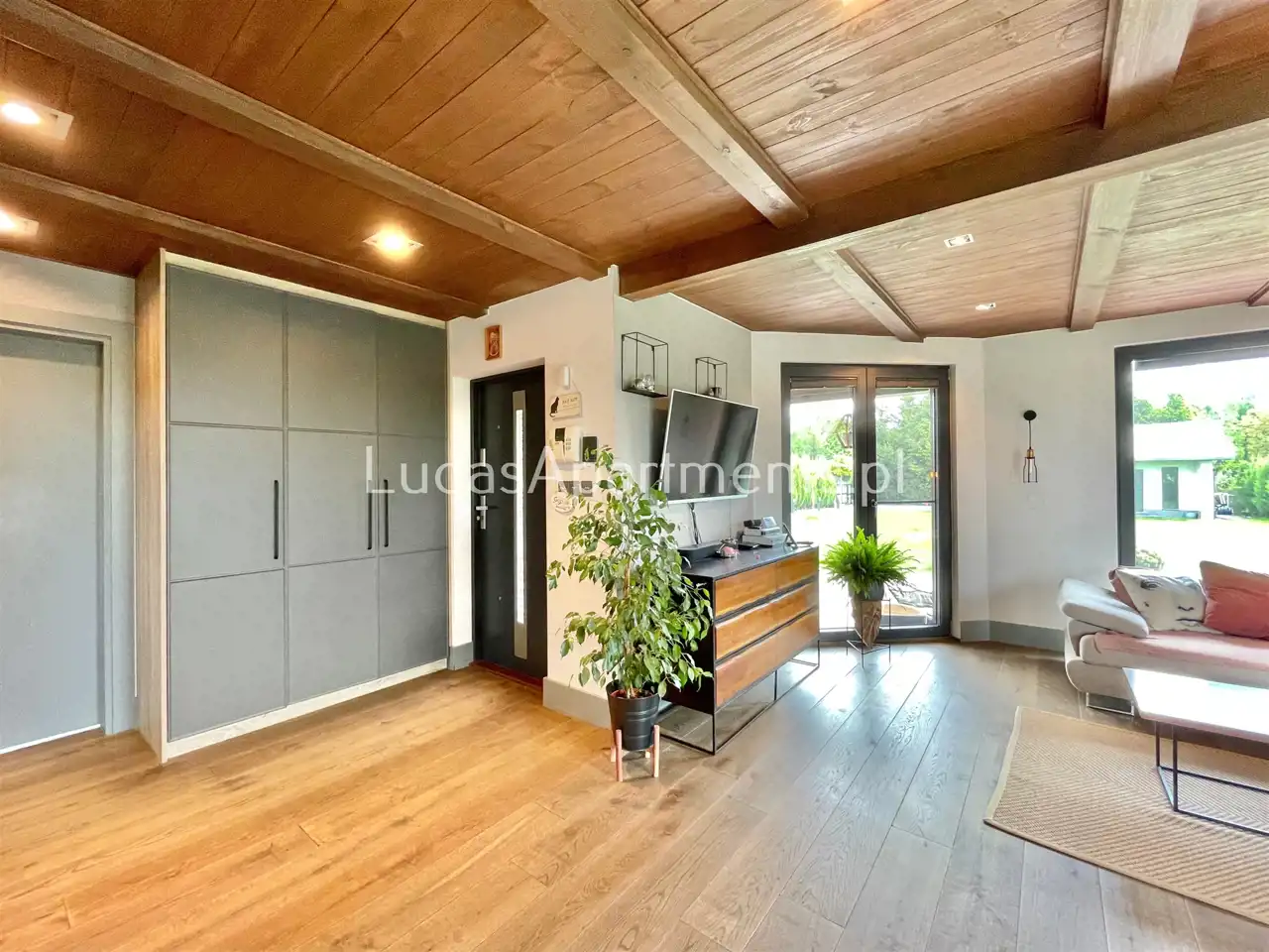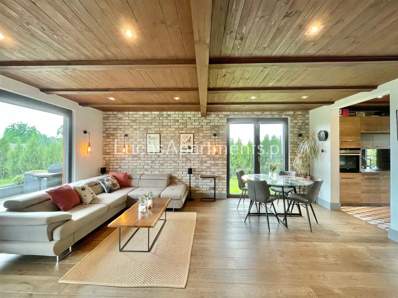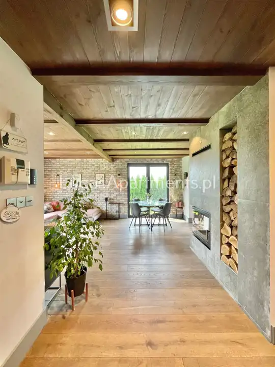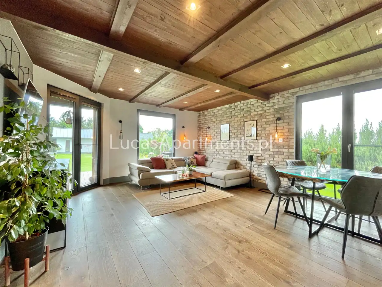 Rok budowy 2015. Dom o konstrukcji szkieletowej, pasywny, charakteryzuje się niskimi kosztami utrzymania. Ogrzewanie własne gazowe zasilane ze zbiornika LPG o pojemności 2700 litrów. Woda ciepła z pieca gazowego 2-funkcyjnego. W salonie znajduj się kominek z płaszczem wodnym. Okna PCV firmy Salamander. Zainstalowany alarm z czujnikami ruchu. Na tarasie zainstalowane automatyczne żaluzje przeciwsłoneczne. Powierzchnia tarasu przed domem około 40 m2.