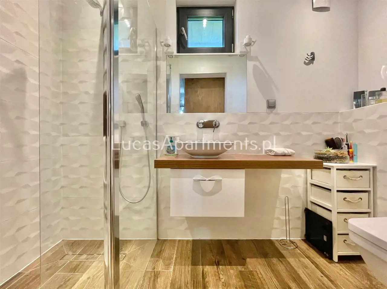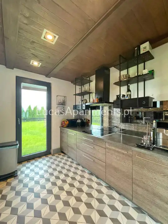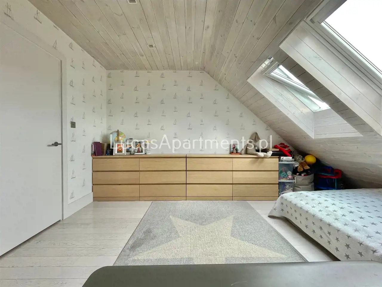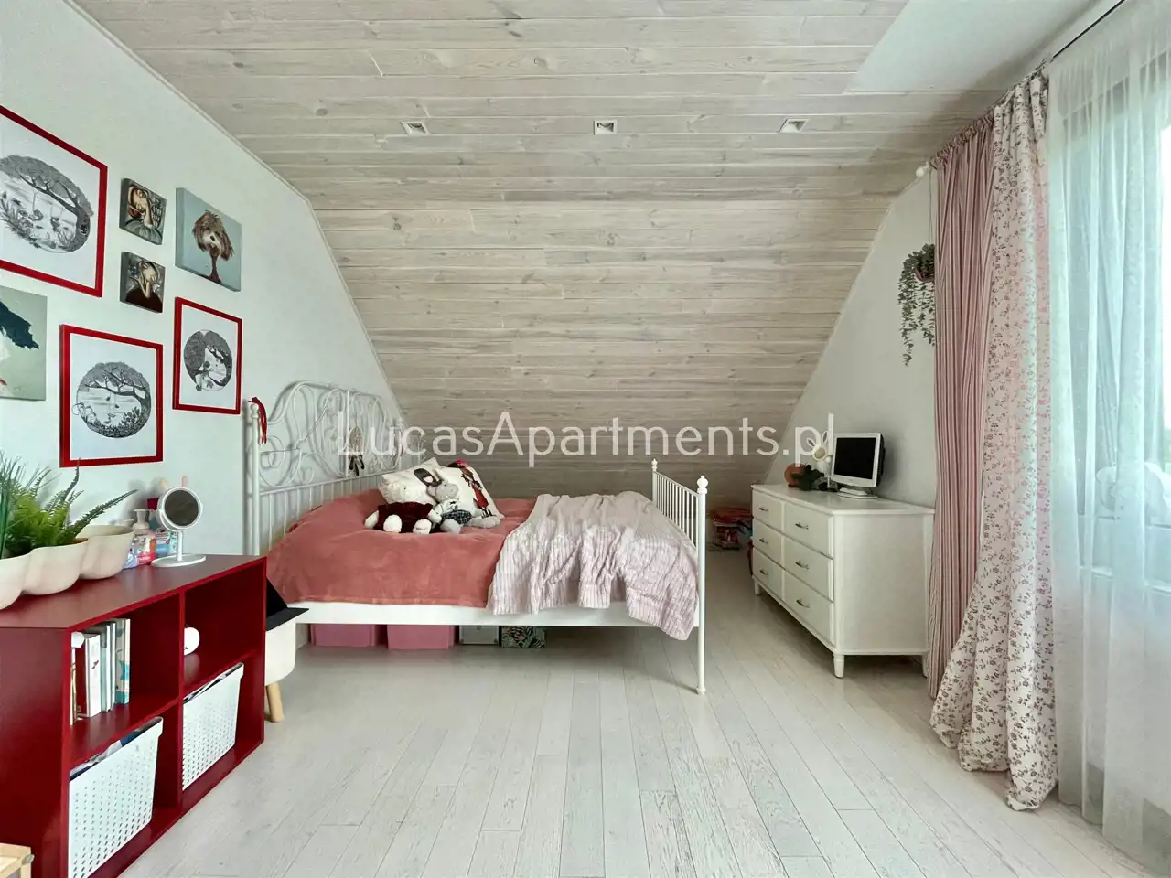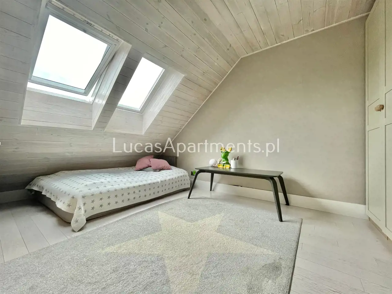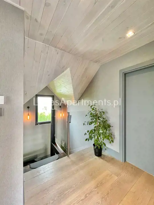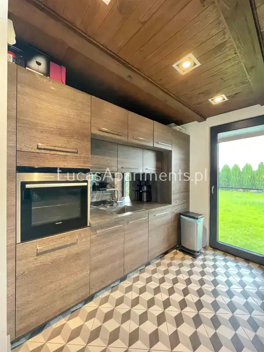 Rok budowy 2015. Dom o konstrukcji szkieletowej, pasywny, charakteryzuje się niskimi kosztami utrzymania. Ogrzewanie własne gazowe zasilane ze zbiornika LPG o pojemności 2700 litrów. Woda ciepła z pieca gazowego 2-funkcyjnego. W salonie znajduj się kominek z płaszczem wodnym. Okna PCV firmy Salamander. Zainstalowany alarm z czujnikami ruchu. Na tarasie zainstalowane automatyczne żaluzje przeciwsłoneczne. Powierzchnia tarasu przed domem około 40 m2.