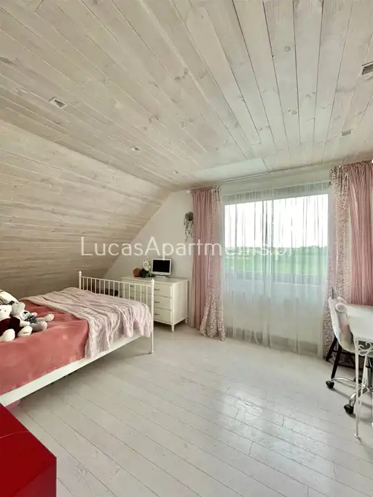 Dom znajduje się na pięknej, płaskiej działce w kształcie prostokąta o powierzchni 1800 m2. Cała działka ogrodzona, zagospodarowana z systemem nawadniania oraz pięknie oświetlona wieczorem. Brama przed garażem automatyczna.