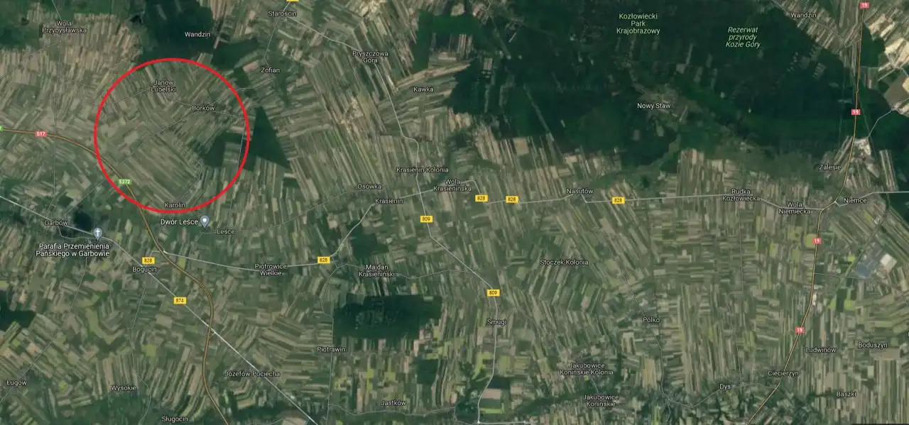Położenie w pobliżu drogi ekspresowej S17 (odległość do 500m od trasy) , w pobliżu tereny zielone oraz zabudowa jednorodzinna.