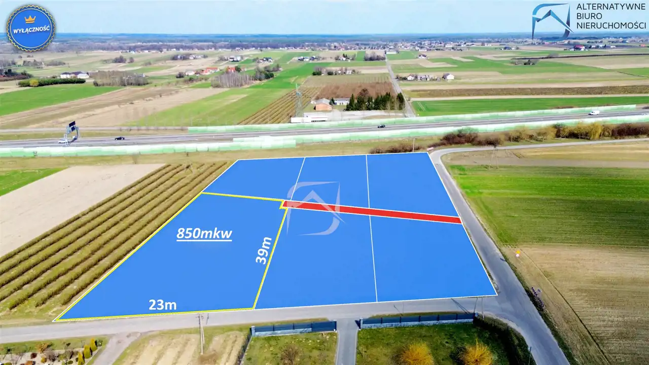 Prezentowana nieruchomość o powierzchni ok. 850 m² usytuowana jest w pierwszej linii zabudowy, bezpośrednio przy asfaltowej drodze gminnej. Takie położenie gwarantuje nie tylko wygodny dojazd, ale również doskonałą ekspozycję i łatwość w zagospodarowaniu terenu. Najbliższe otoczenie stanowią pola uprawne oraz nieliczna zabudowa jednorodzinna, co zapewnia przyszłym mieszkańcom ciszę, spokój i poczucie prywatności.