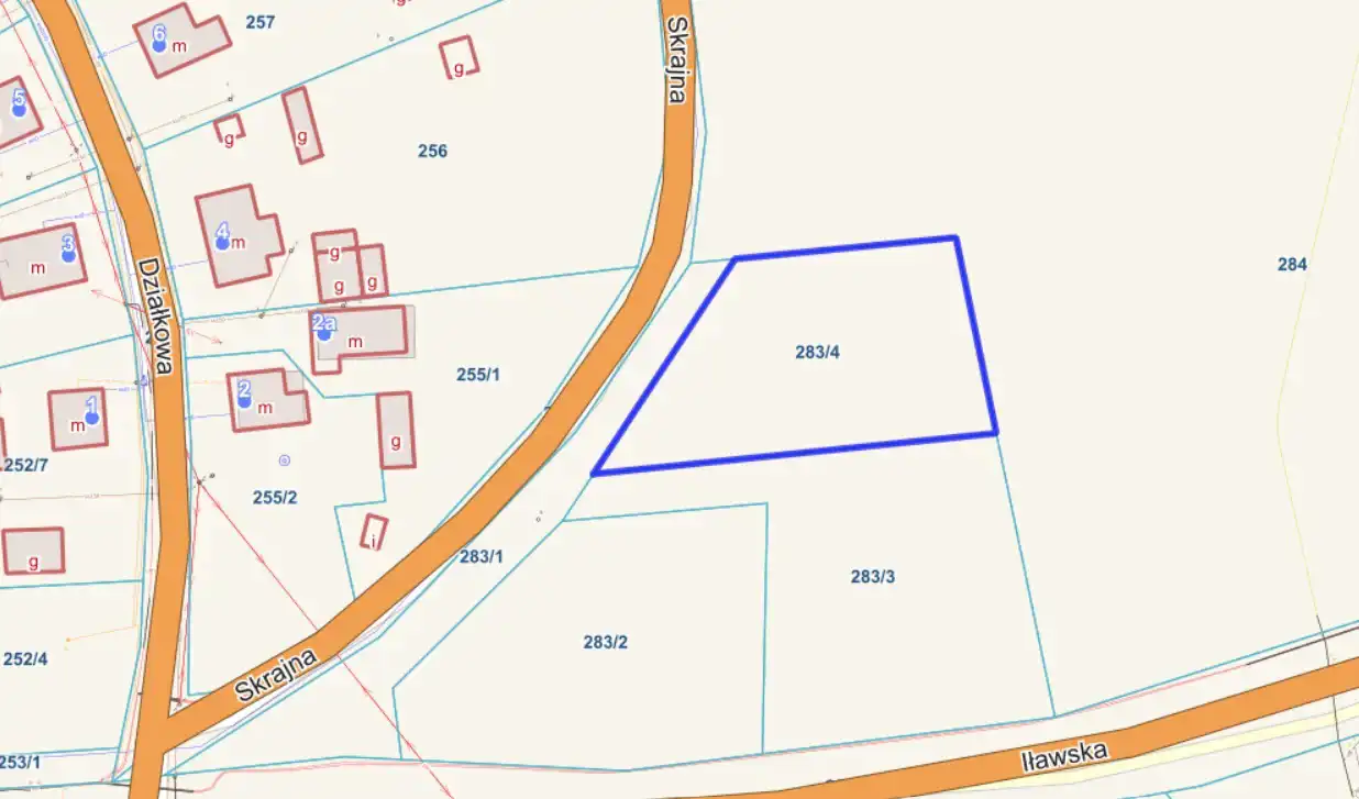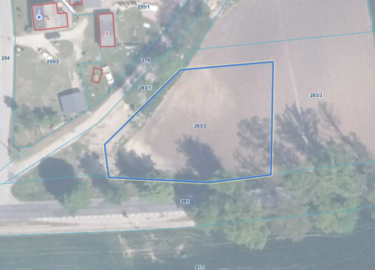 Działka nr 283/2 – powierzchnia: 1569 m² - cena 76 881 zł