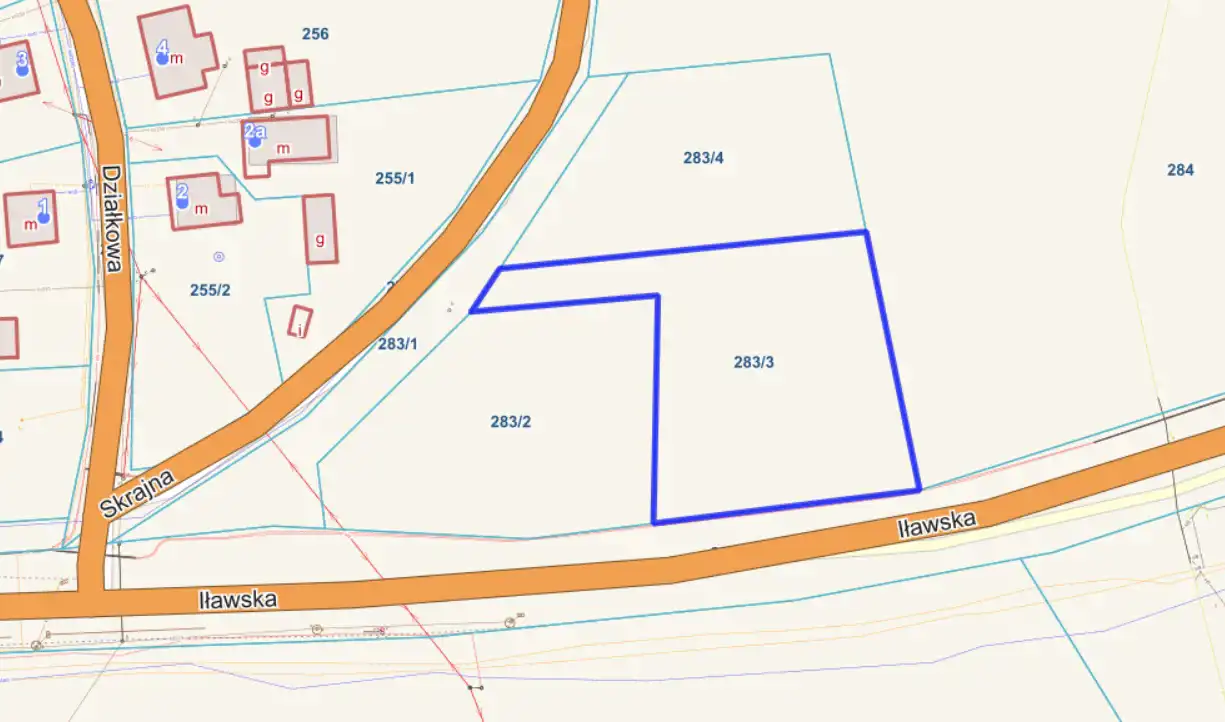 Działka nr 283/3 – powierzchnia: 1720 m² - 95 000 zł