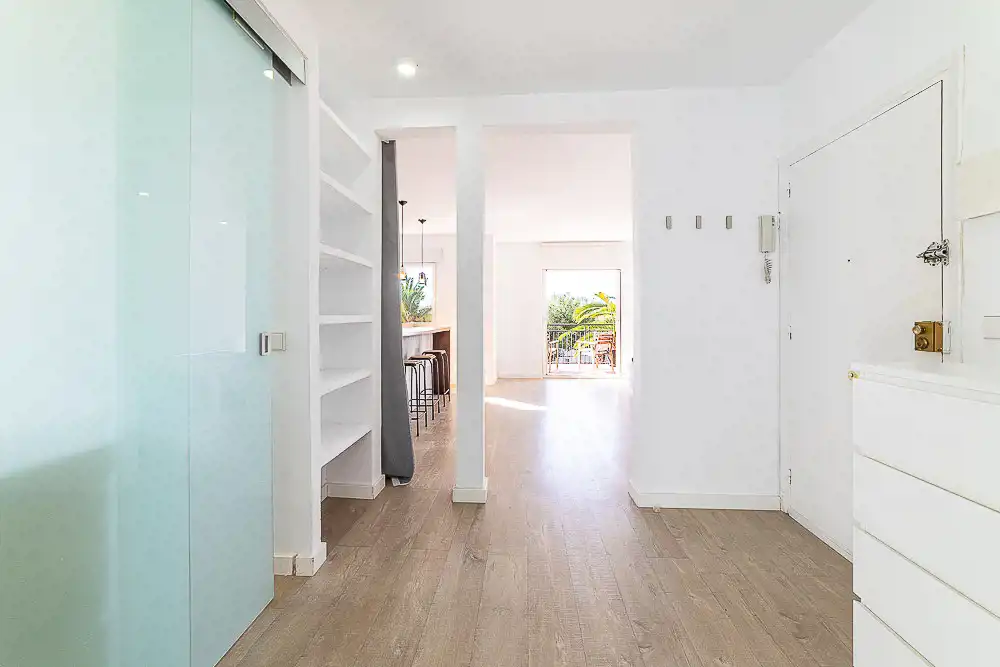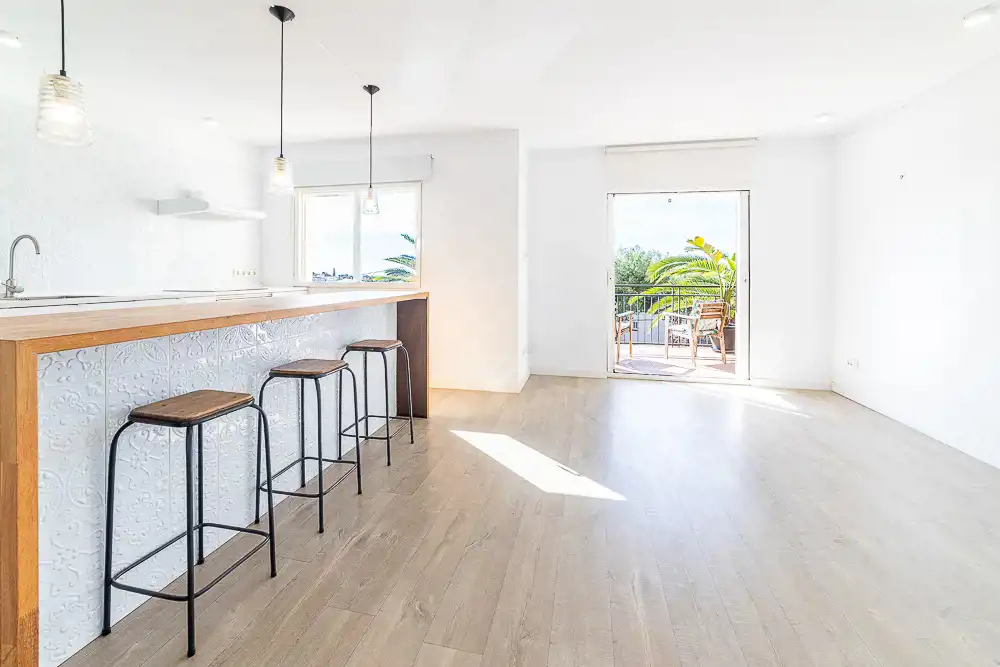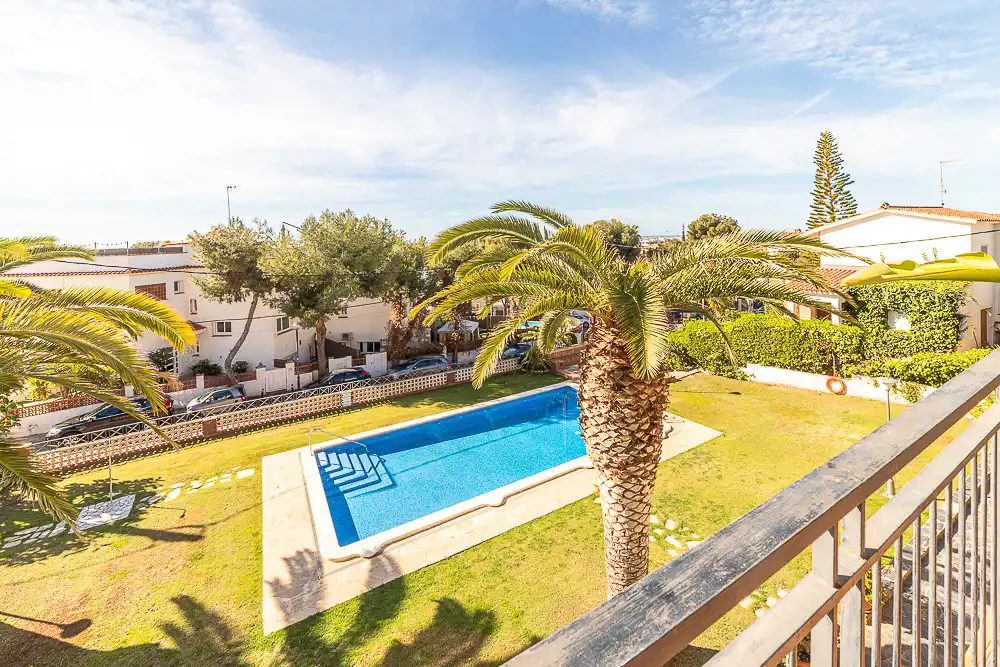 Hiszpania ( Katalonia) MB Nieruchomości oferuję mieszkanie w małej wspólnocie sasiadów z ogrodem, basenem i strefa do grillowania w miejscowości Sitges dzielnica Vevantina. Dwu pokojowe mieszkanie o powierzchni całkowitej 60 m2 użytkowej 48,95 m2 po kapitalnym remoncie, bardzo przestronne, otwarte wnętrze które można podzielić na różne strefy za pomocą mebli. Otwarta kuchnia w pełni wyposażona, łazienka, duży pokój, taras od strony południowej z widokiem na ogród z basenem. Okna PCV, na podłogach parkiet i terakota. Ogrzewanie własne piec gazowy. Drzwi wejściowe antywłamaniowe. Cała posesja ogrodzona z miejscem na parking. Bardzo ładna i bezpieczna lokalizacja 580 m od plaży. Opłaty: 164 Euro opłaty wspólne, Podatek od nieruchomości rocznie 350,43 euro.