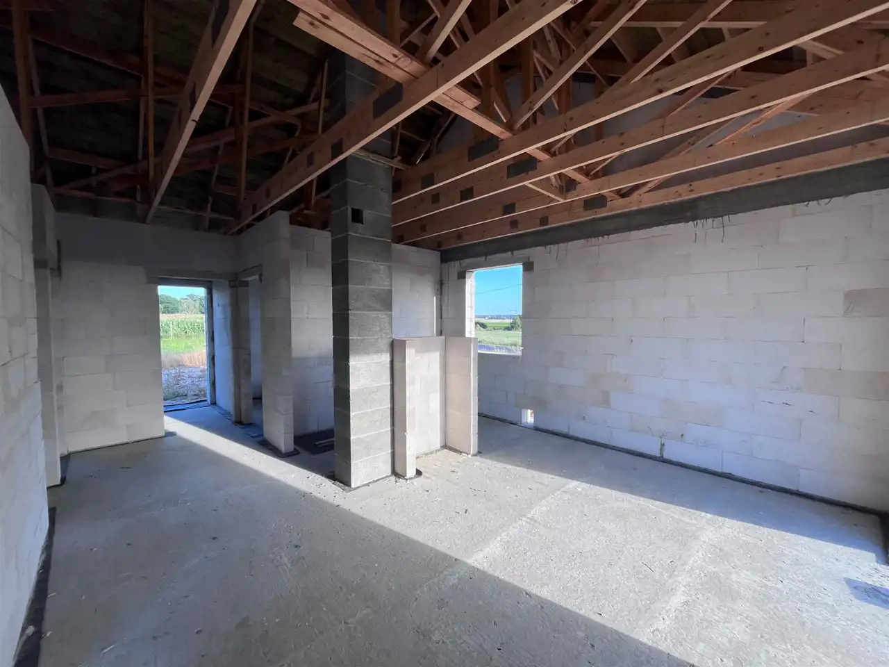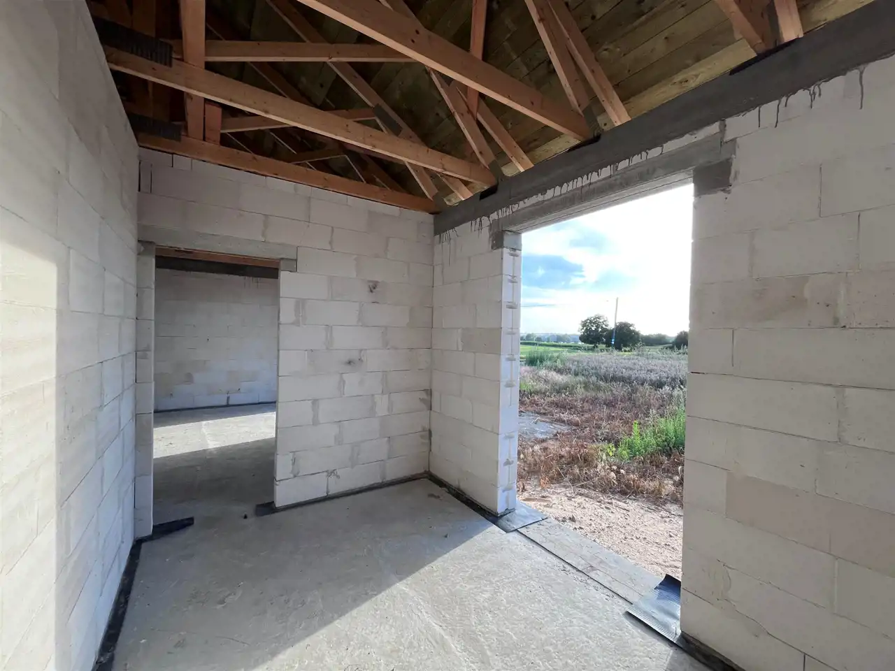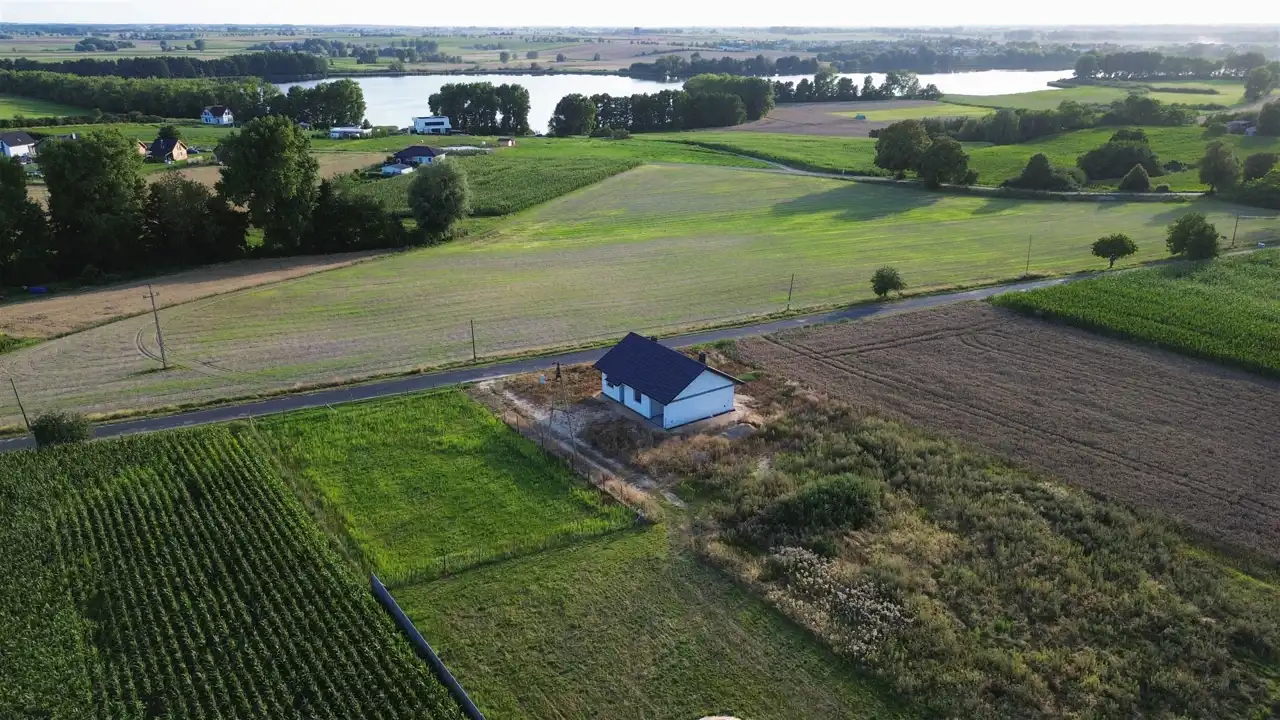 Dom został wybudowany w 2025 roku z pustaka, a dach pokryto blachą. Do działki doprowadzono wodę i prąd. Okolica jest cicha, z przewagą niezabudowanych parceli, a w pobliżu znajduje się jezioro, które stanowi idealne miejsce do wypoczynku. Dojazd do nieruchomości prowadzi asfaltową drogą.