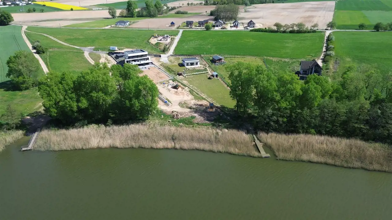 Parcele położone są nad jeziorem, dojazd drogą asfaltową, w której znajdują się przyłącza wody i energii elektrycznej. Koszt podłączenia mediów do konkretnej działki jest niewielki.