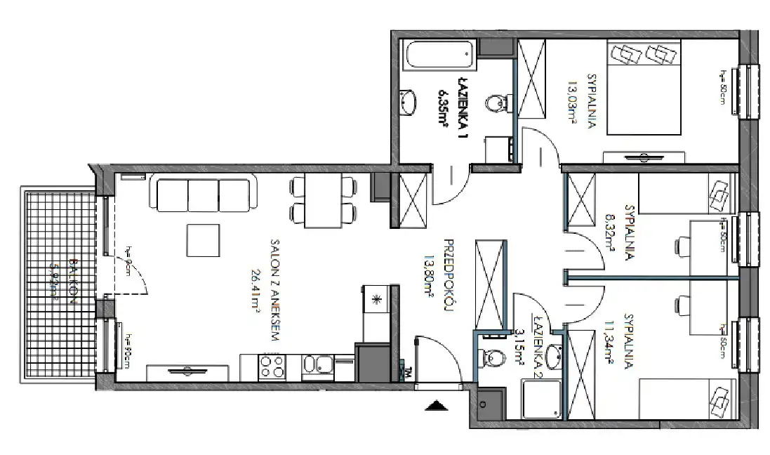 - Charakterystyka mieszkania 82.17 m2, 4 pokoje