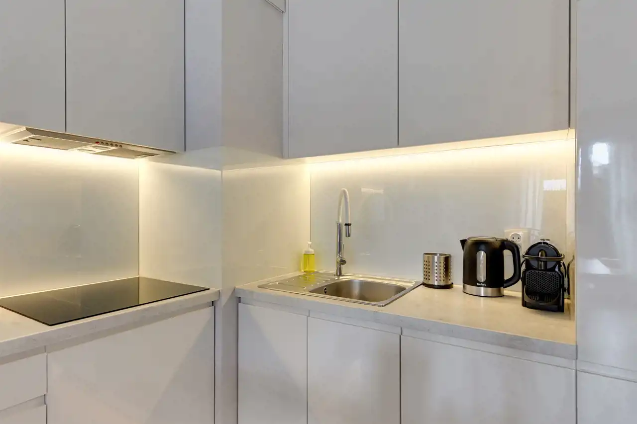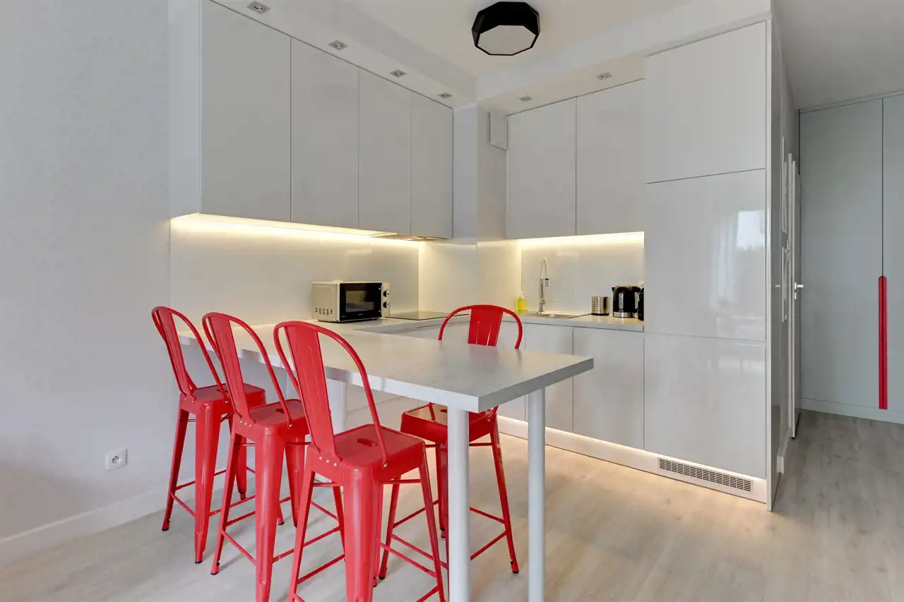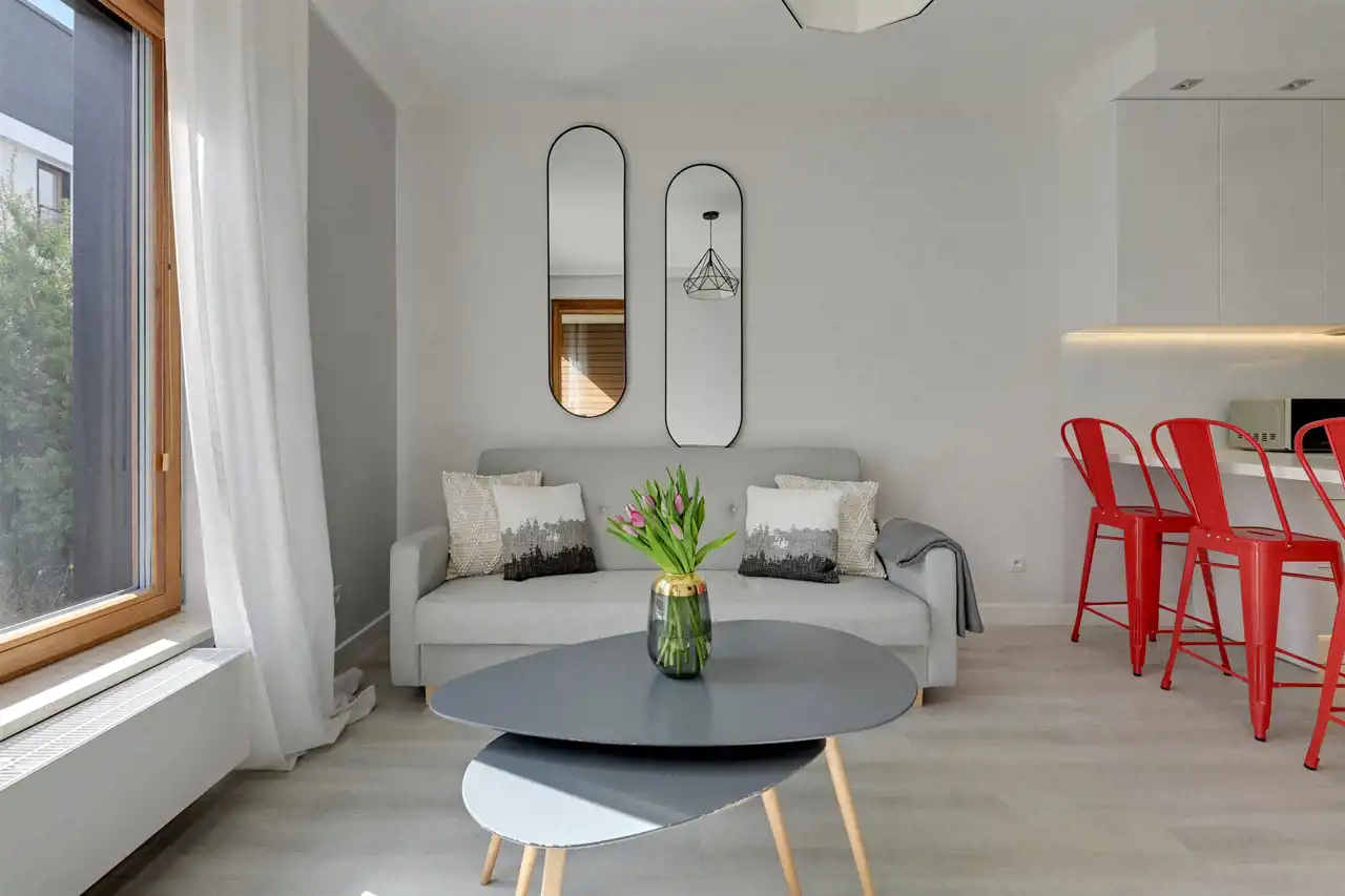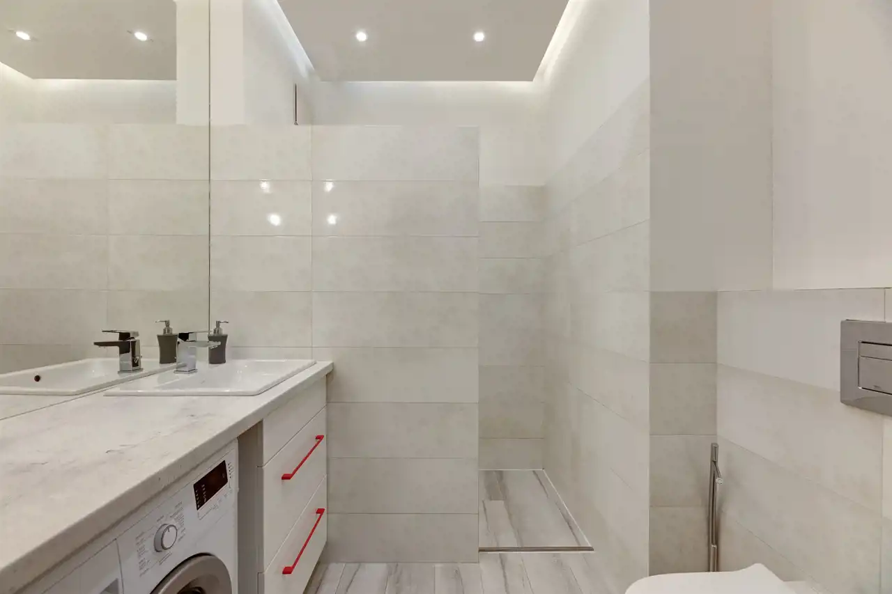 Cały apartament został wykończony ze smakiem z wysokiej jakości materiałów.