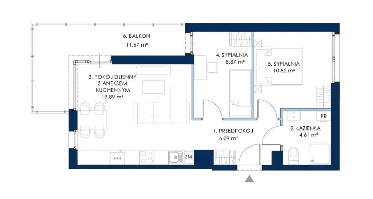 - Charakterystyka mieszkania 50.28 m2, 3 pokoje