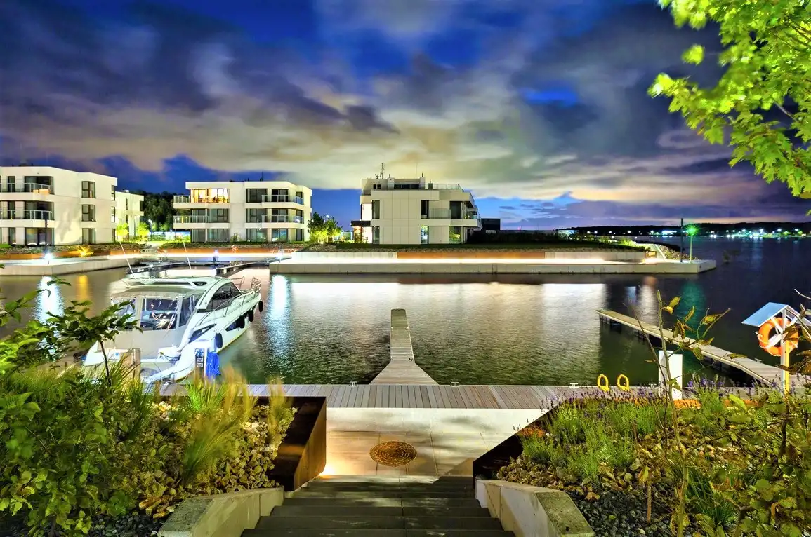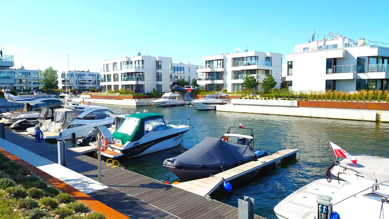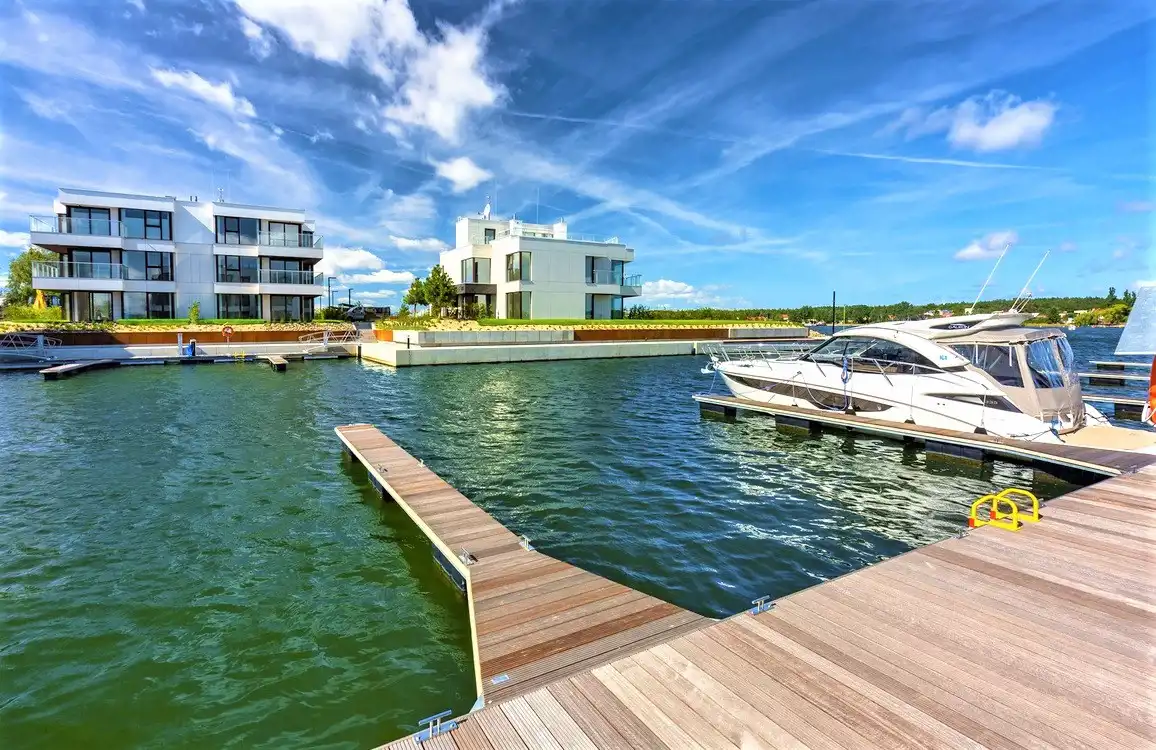 Ekskluzywny apartament w prestiżowej, unikatowej inwestycji apartamentowej z prywatnymi miejscami postojowymi dla jachtów i łodzi motorowych bezpośrednio przy budynku.