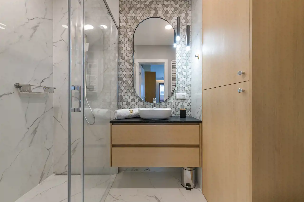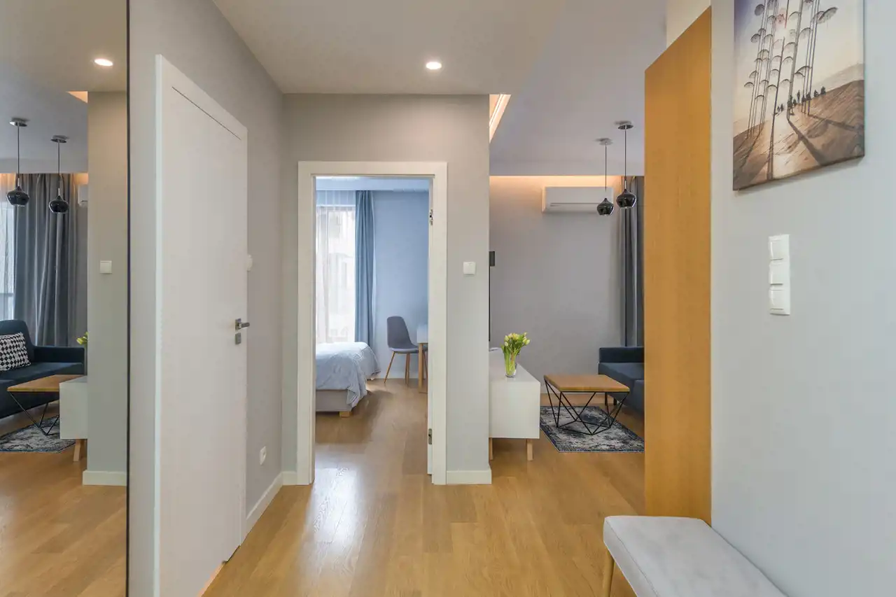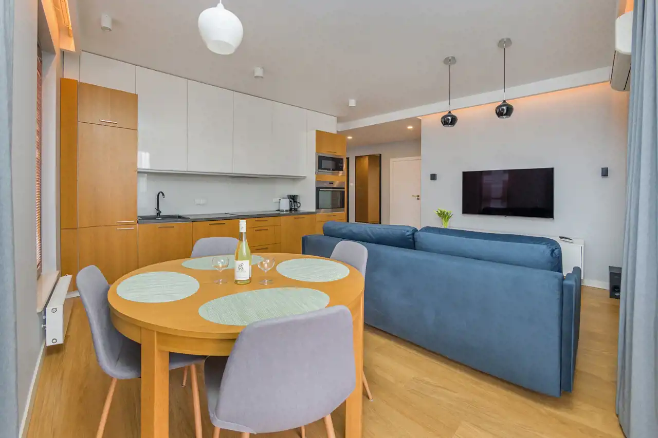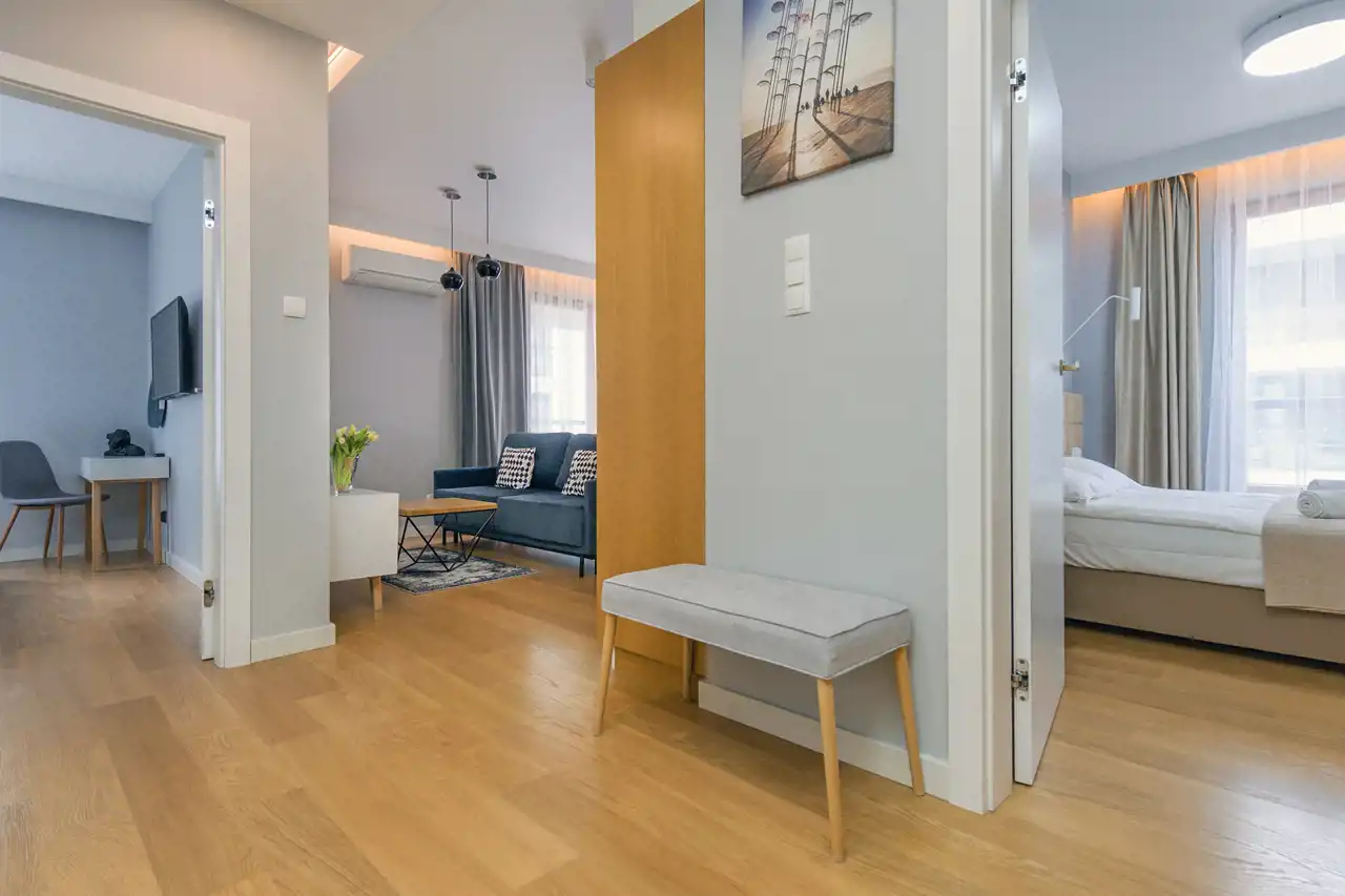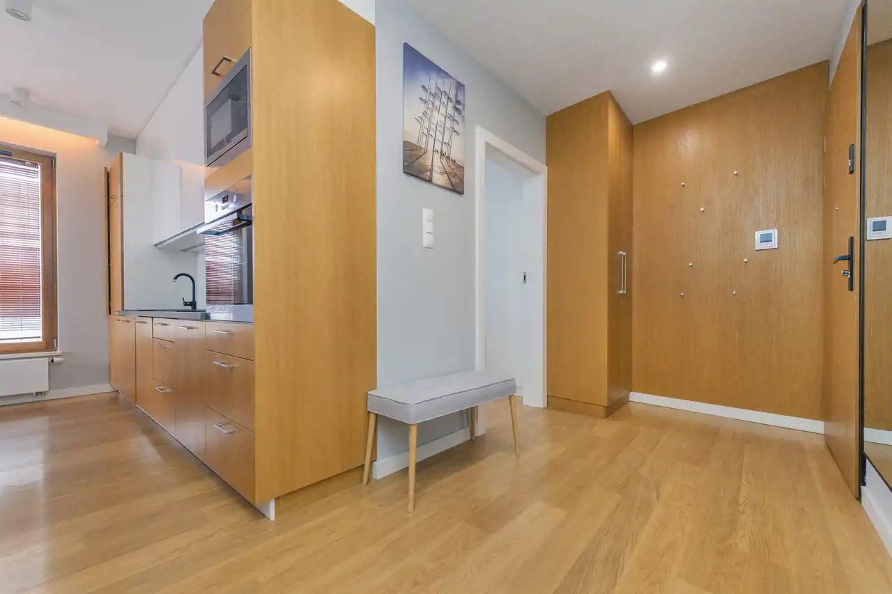 Cały apartament został wykończony ze smakiem z bardzo wysokiej jakości materiałów pod okiem architekta wnętrz.