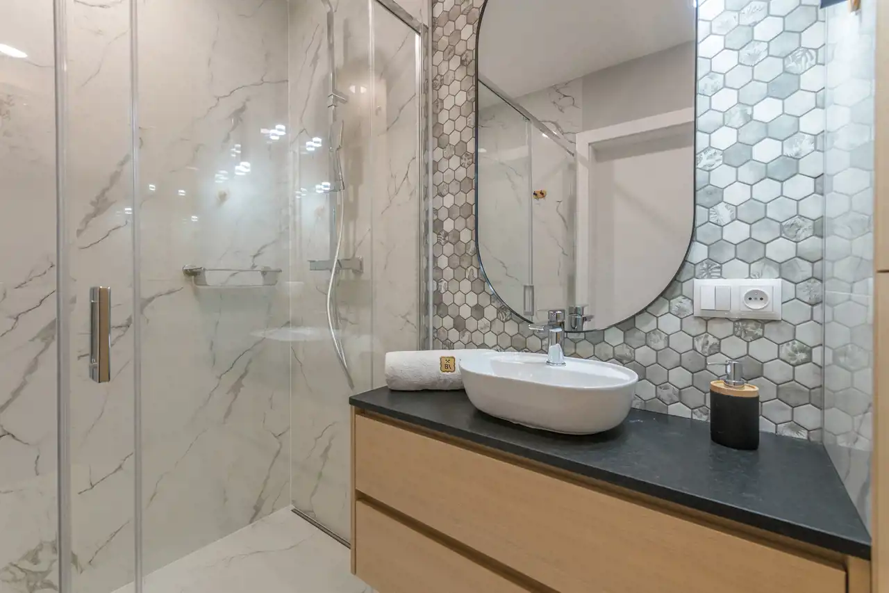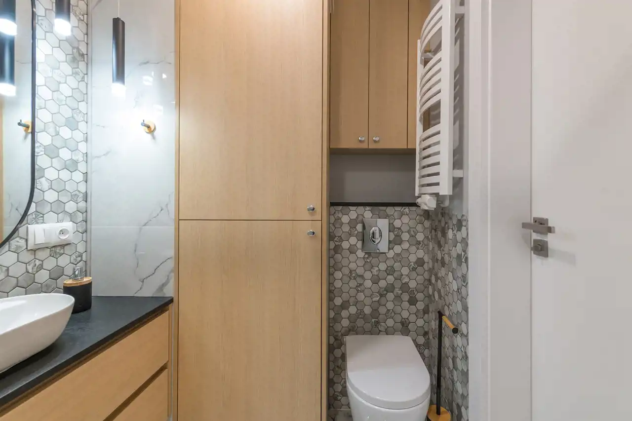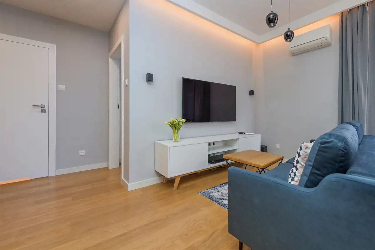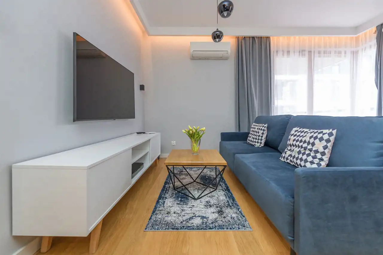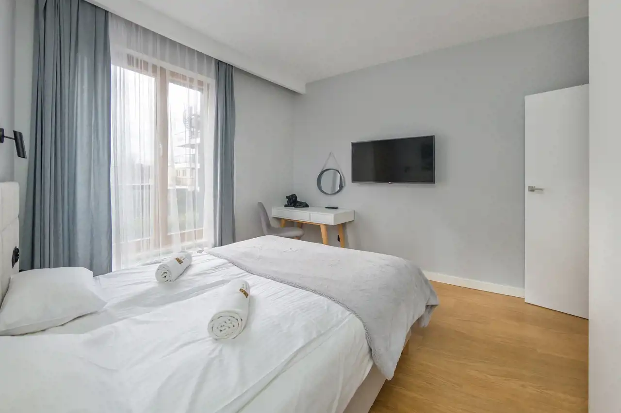 Cały apartament został wykończony ze smakiem z bardzo wysokiej jakości materiałów pod okiem architekta wnętrz.