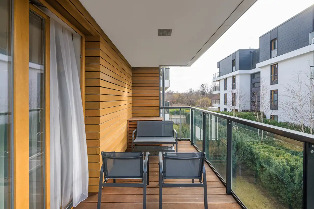 - salonu z wyjściem na przestronny 12m2 taras z widokiem na zieleń