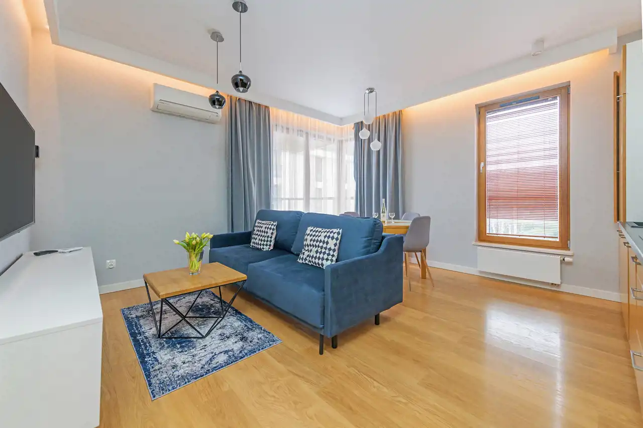Apartament jest w pełni umeblowany, jasny z dużą ilością okien i światła, posiada znakomity rozkład pomieszczeń indywidualnie zaprojektowany