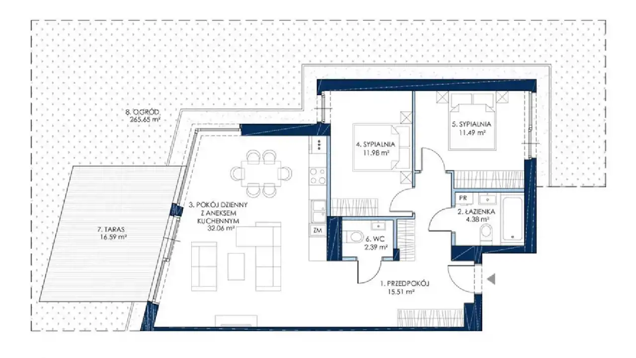 Do apartamentu przynależy taras i prywatny ogród - 295m2
