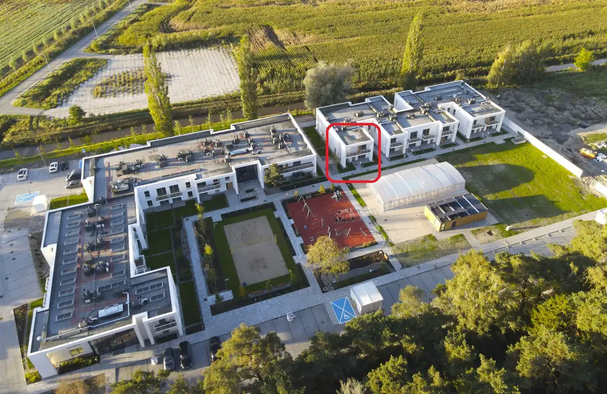 Dodatkowo zakończona jest już budowa strefy rekreacyjno wypoczynkowej z basenem, idealna na ochłodzenie w gorące dni.
