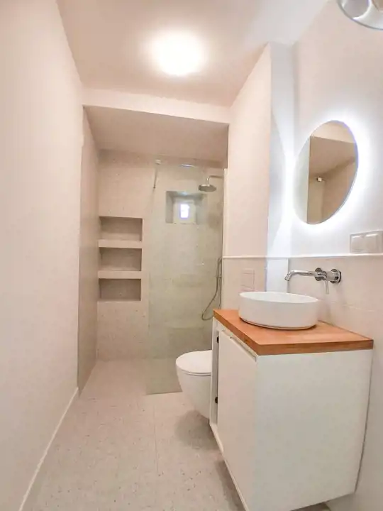 - Media Ogrzewanie: elektryczne; Woda: ciepła - piecyk; Gaz: jest