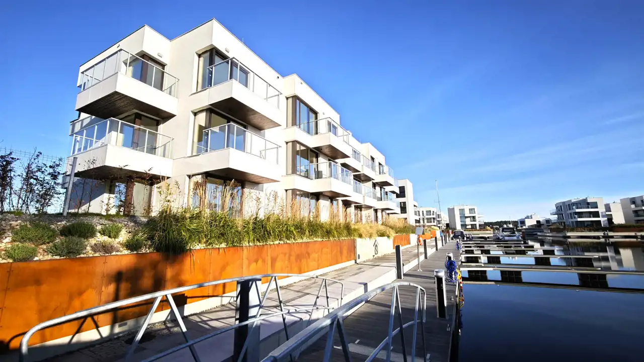 Ekskluzywny apartament w prestiżowej, unikatowej inwestycji apartamentowej z prywatnymi miejscami postojowymi dla jachtów i łodzi motorowych bezpośrednio przy budynku.