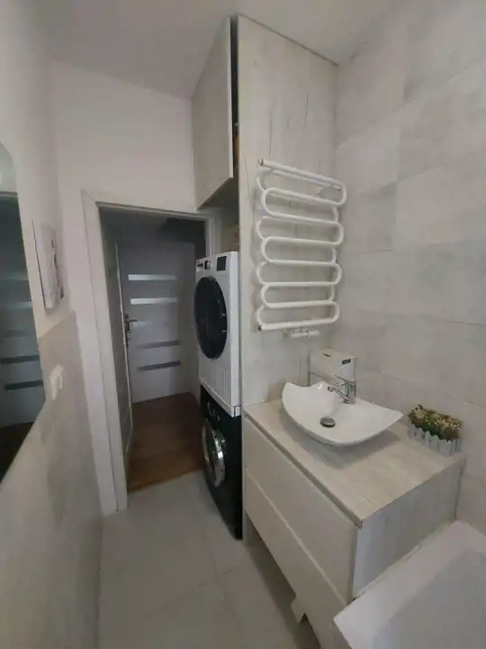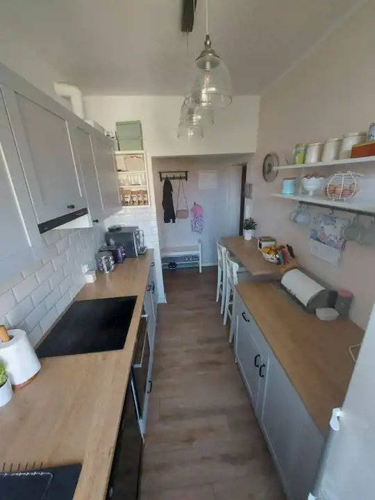 - Wyposażenie: pralka, lodówka, kuchenka, piekarnik, zmywarka