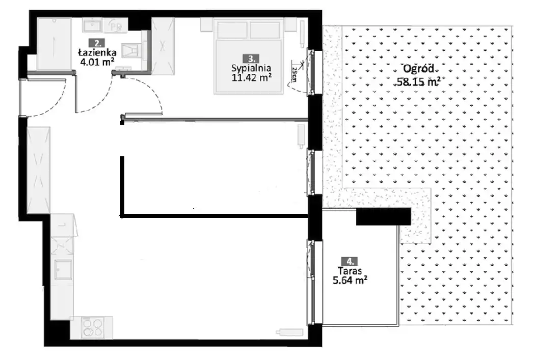 - Charakterystyka mieszkania 57.12 m2, 2 pokoje