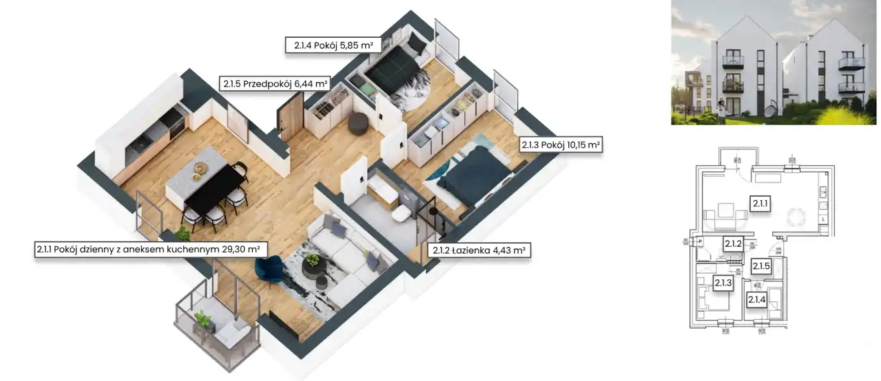 - Charakterystyka mieszkania 56.17 m2, 3 pokoje