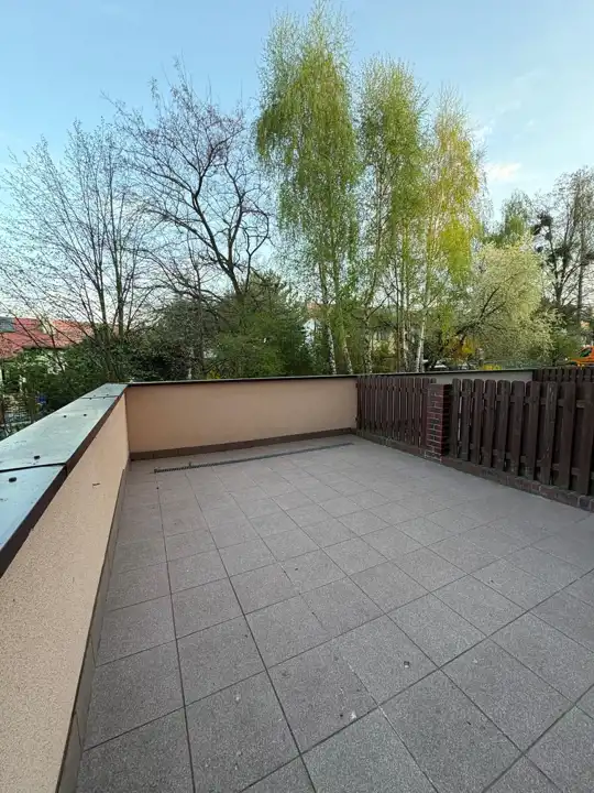 Taras o powierzchni 20 m2 otoczony zielenią przynależy do mieszkania.