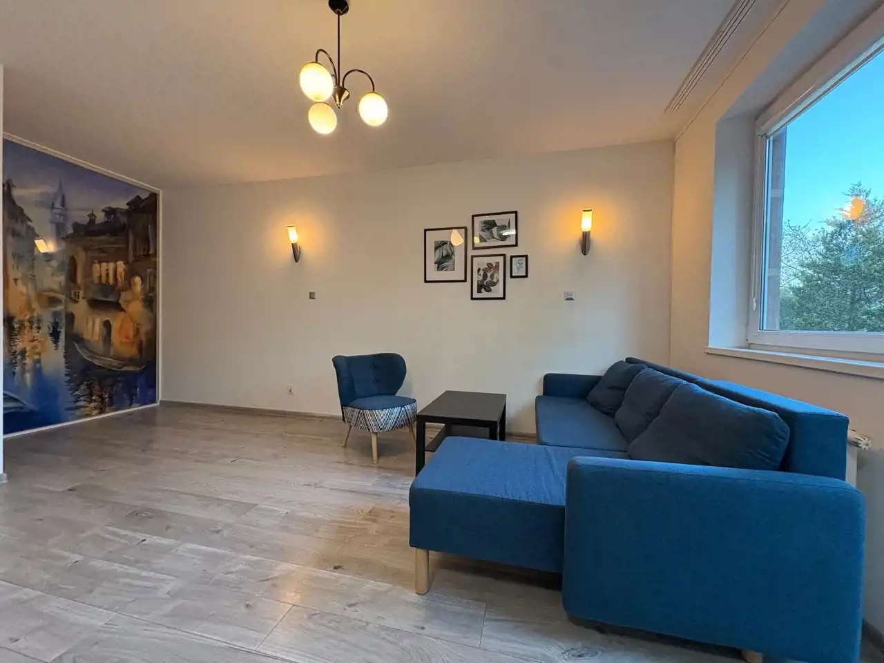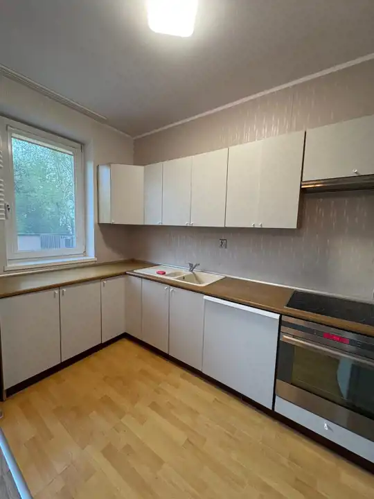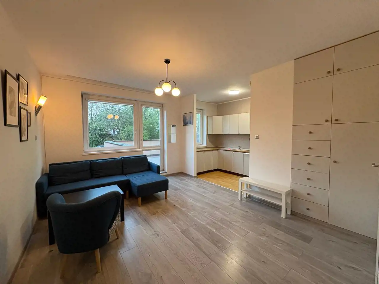 Mieszkanie na wysokim parterze o powierzchni 36,1 m² (w tym piwnica 2,5 m2) gotowe do zamieszkania. Składa się z przestronnego salonu z aneksem kuchennym, łazienki z WC oraz przedpokoju. Wnętrze jest w pełni umeblowane i wyposażone w sprzęt AGD, m.in. lodówkę, płytę indukcyjną, piekarnik, zmywarkę, okap oraz pralkę. Wszystkie meble wraz z wyposażeniem pozostają w cenie najmu.