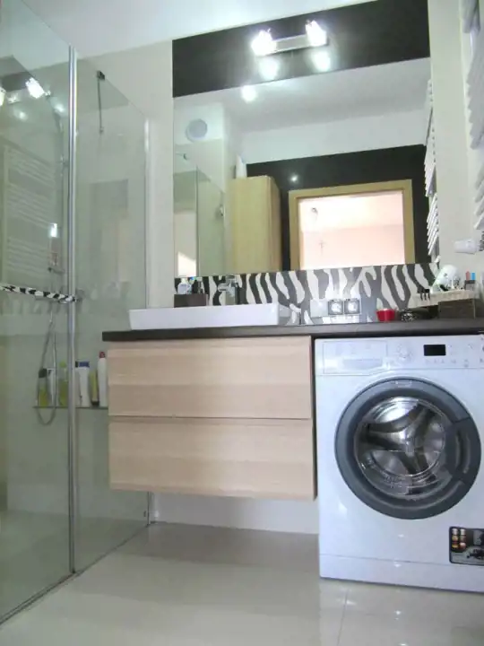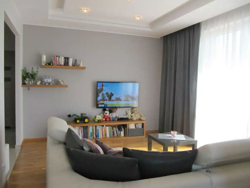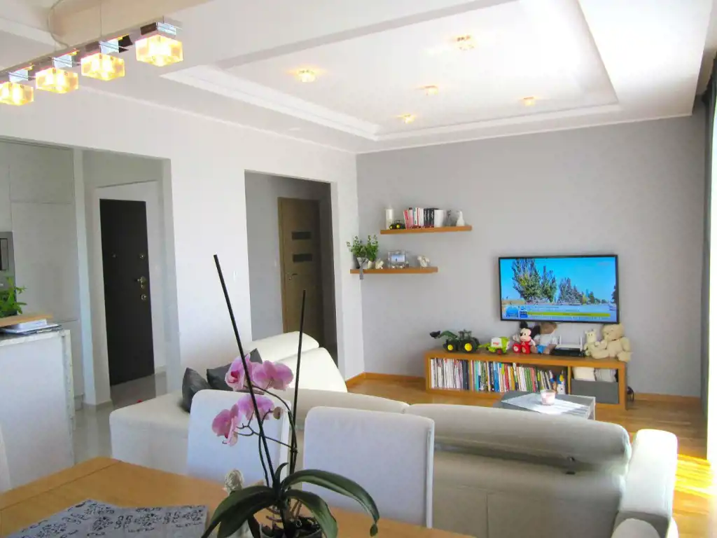 Salon z jadalnią ok 20 m2, otwarta kuchnia z ladą, w pełni wyposażona. Sypialnia, łazienka, osobne WC. W korytarzu zabudowa na wymiar. Duży taras z widokiem na zieleń i okoliczną zabudowę. Niewątpliwą zaletą mieszkania jest cicha i spokojna okolica. Samo mieszkanie jest bardzo intymne – brak bezpośredniej zabudowy.