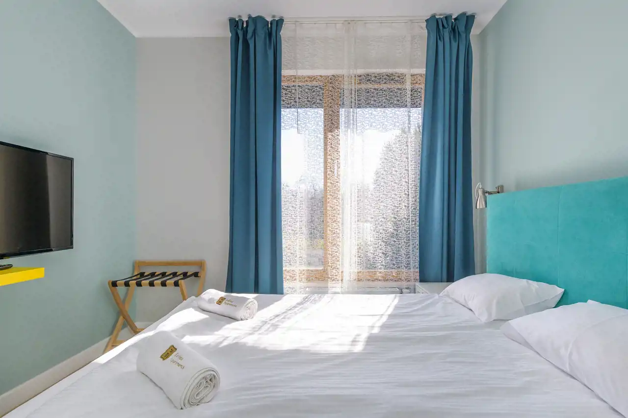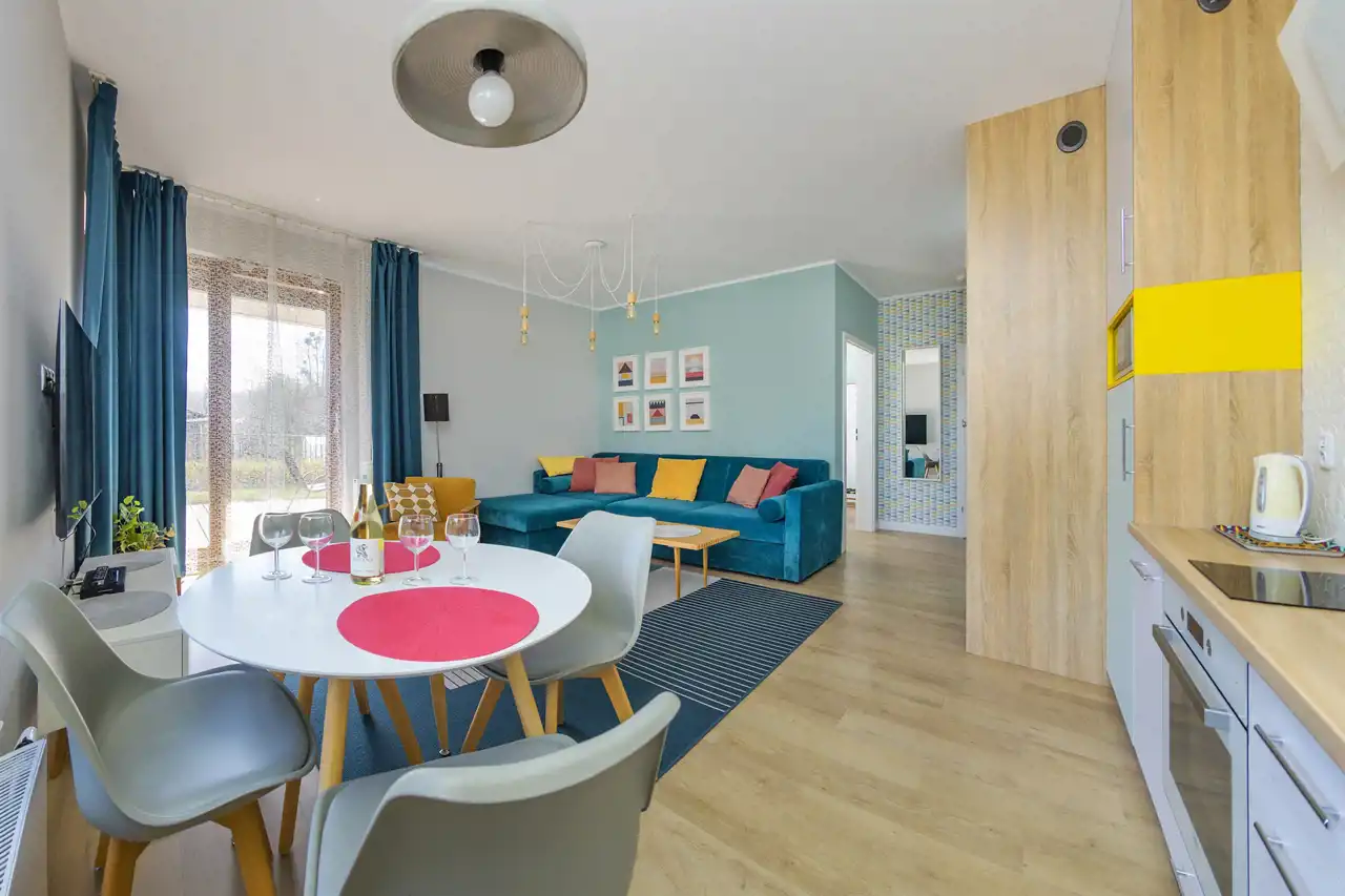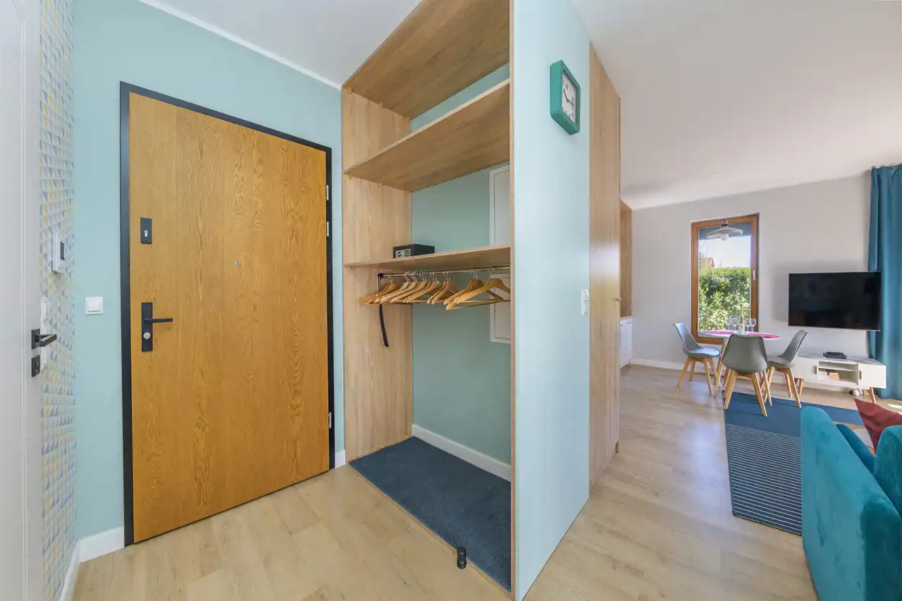 Apartament dwupokojowy o powierzchni 42m2 składający się z następujących pomieszczeń: