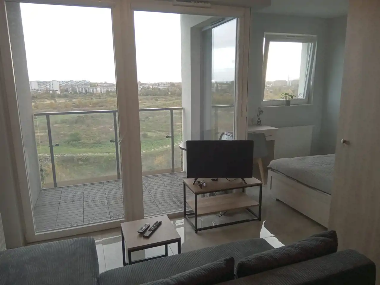 Do wynajęcia komfortowe, 2-pokojowe mieszkanie o powierzchni 29,50 mkw, w którym wydzielono część dzienną – pokój z aneksem kuchennym oraz obok – sypialnię, usytuowane na 11. piętrze w 17-piętrowym, nowoczesnym budynku z 2024 roku przy ulicy Starowiejskiej w dynamicznie rozwijającej się dzielnicy Gdańsk Letnica. Budynek wyposażony jest w cichobieżne windy zjeżdżające bezpośrednio do poziomu hali garażowej i tarasu na dachu, dostępnego dla mieszkańców z infrastrukturą rekreacyjną i wypoczynkową.