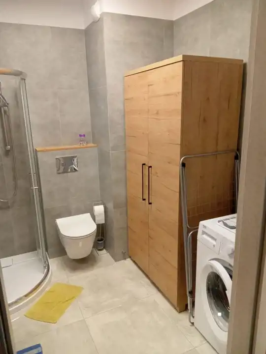 - Łazienka: Całkowicie wykończona i wyposażona, z pralką