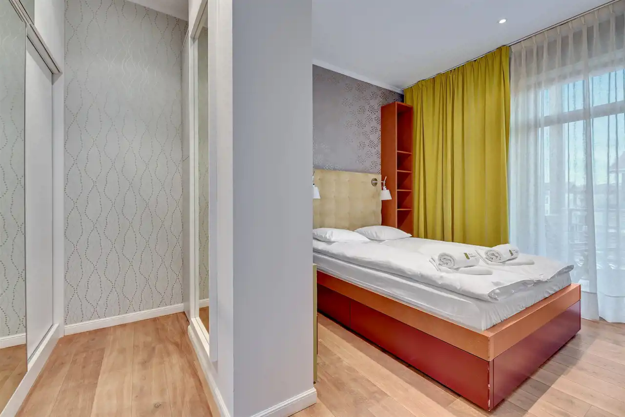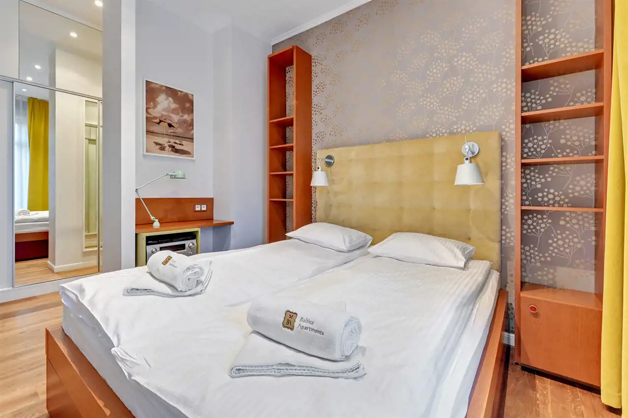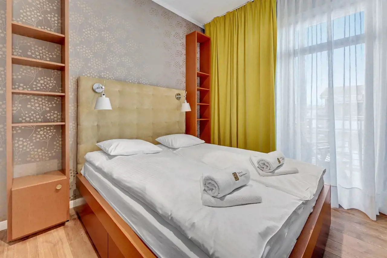 Na wynajem luksusowy dwupokojowy apartament "Kings Court" o powierzchni użytkowej 50m2 zlokalizowany w luksusowym kompleksie Neptun Park w odległości 100m od plaży w Jelitkowie tuż przy promenadzie.