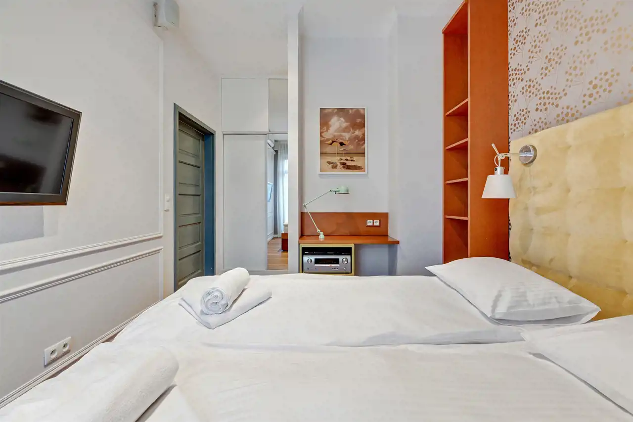 - sypialni z podwójnym łóżkiem typu King Size oraz garderobą