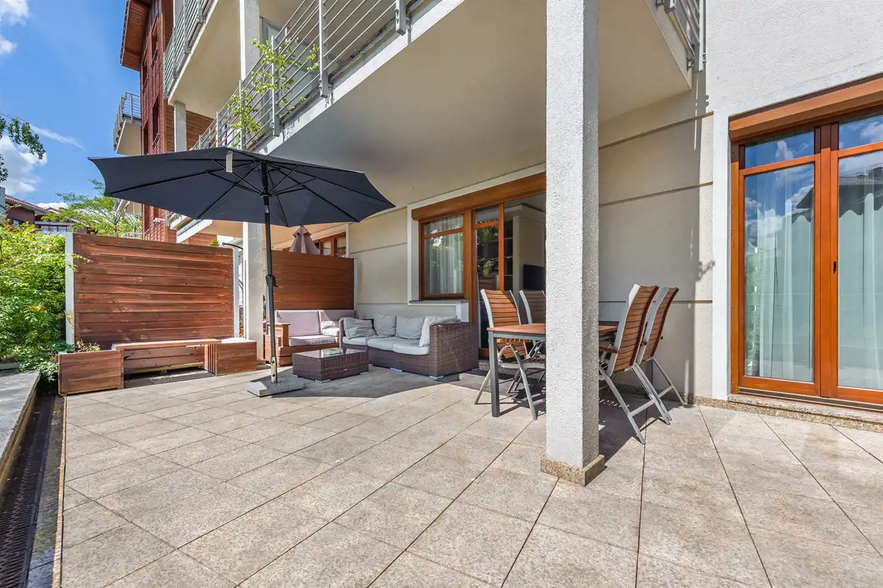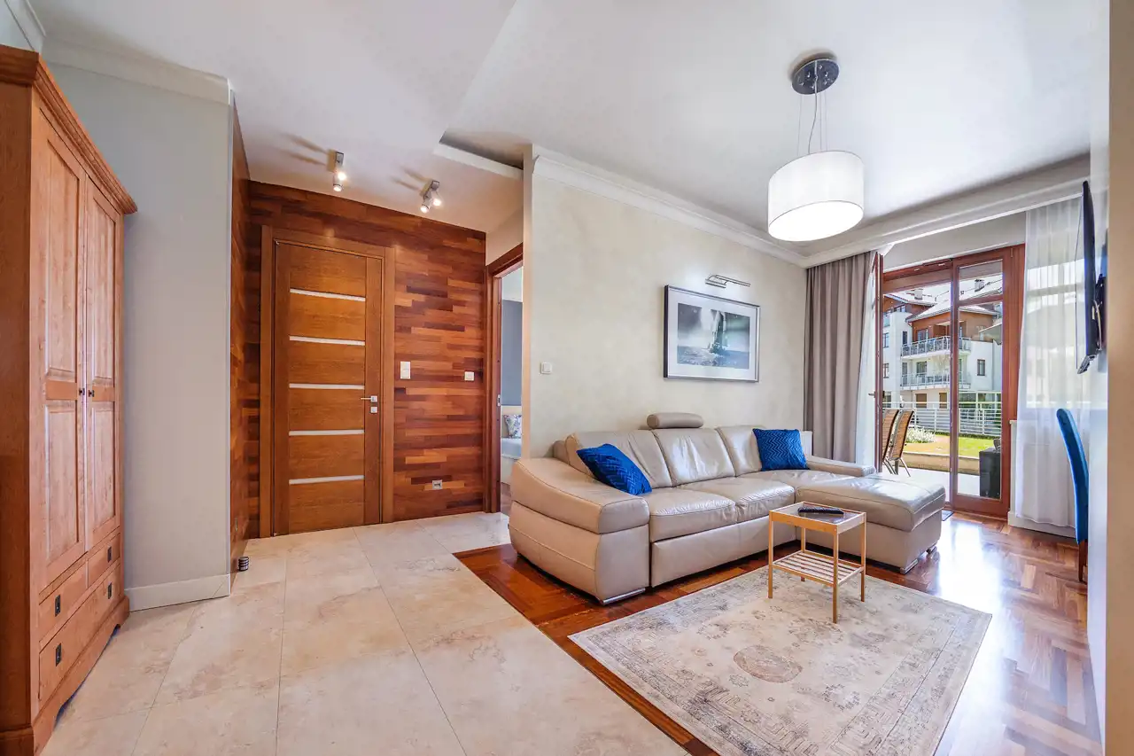Na wynajem luksusowy dwupokojowy apartament "SUNSHINE&TERRACE" o powierzchni użytkowej 50m2 zlokalizowany w luksusowym kompleksie Neptun Park w odległości 100m od plaży w Jelitkowie tuż przy promenadzie.