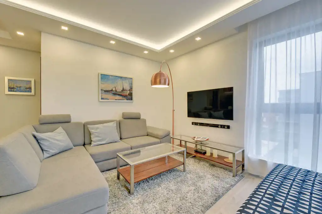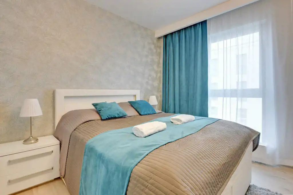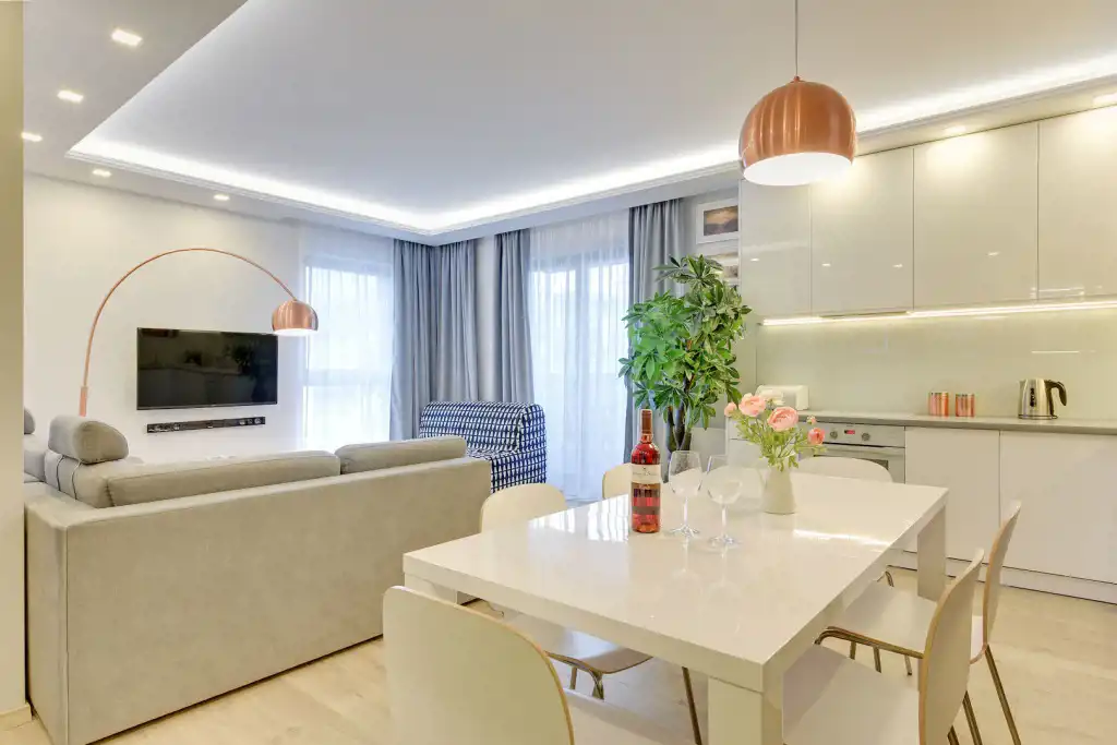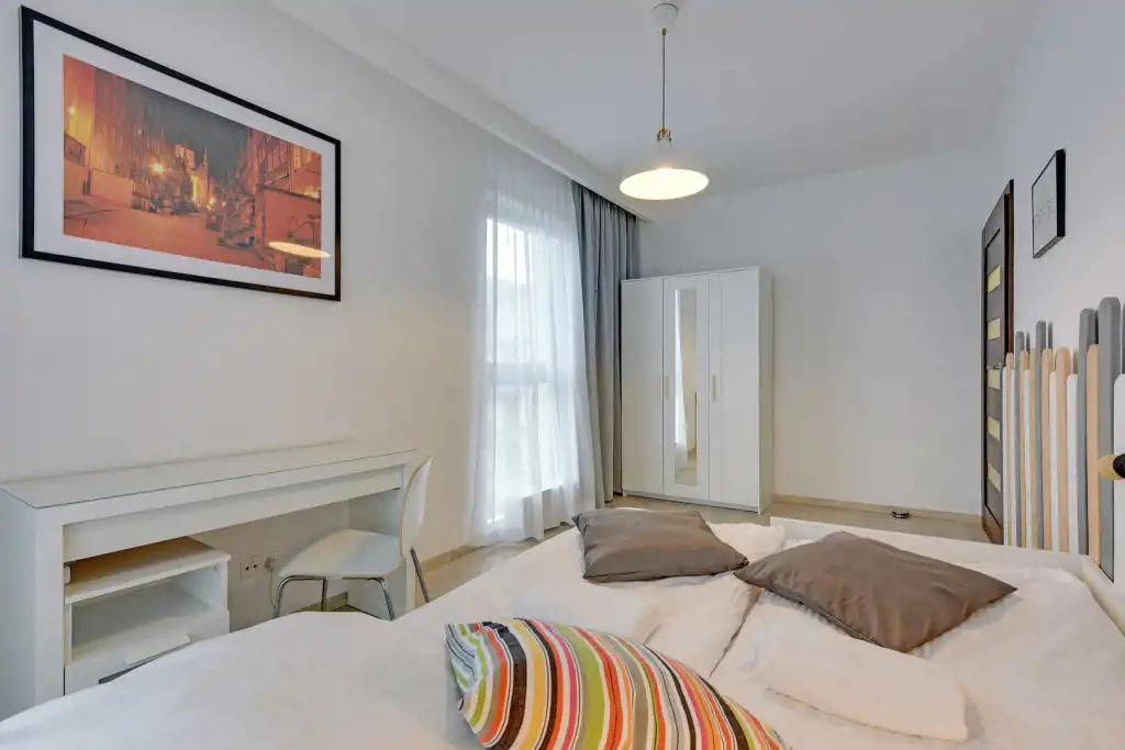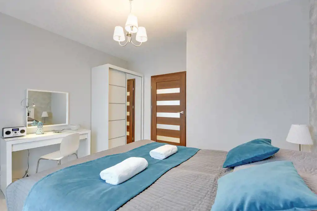 Apartament jest przestronny, o znakomitym rozkładzie pomieszczeń, o pow. 70m2, o bardzo wysokim standardzie, w pełni wyposażony oraz umeblowany składający się z następujących pomieszczeń: