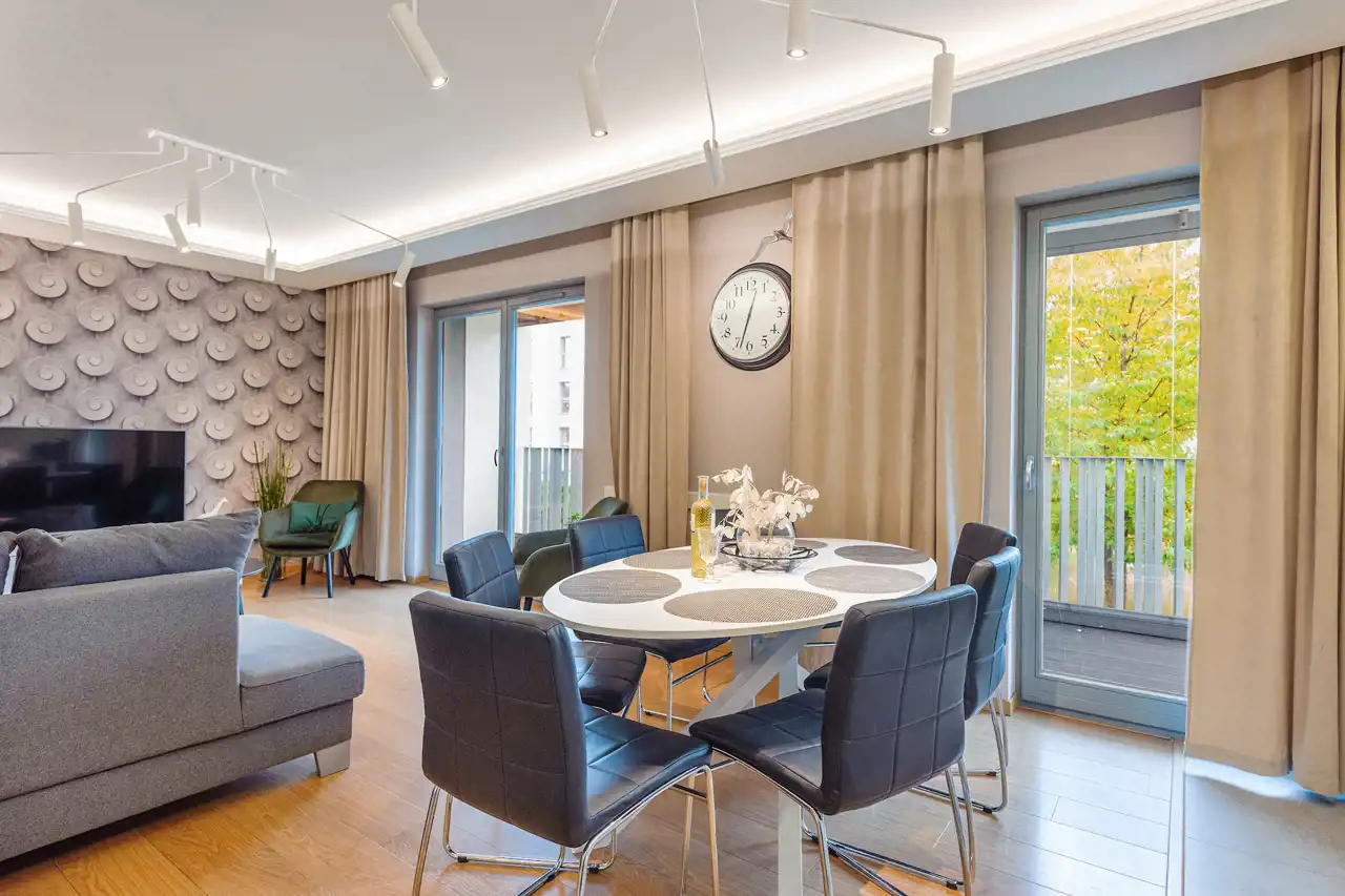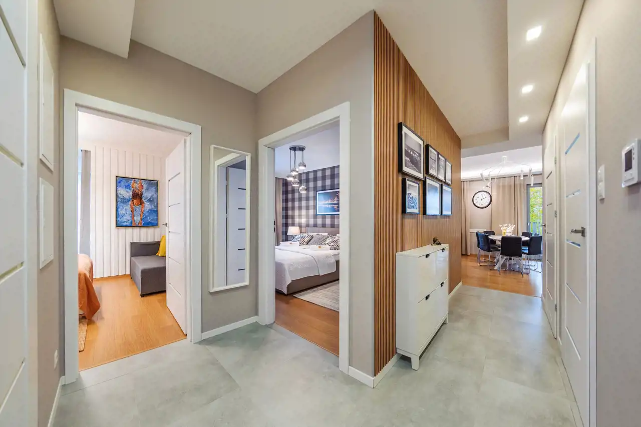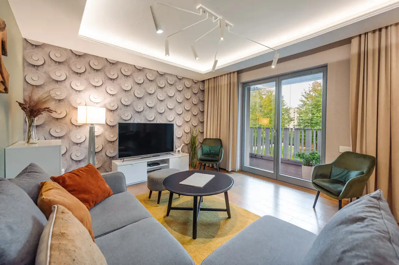 Apartament jest przestronny, o znakomitym rozkładzie pomieszczeń, o pow. 75m2, o bardzo wysokim standardzie, w pełni wyposażony oraz umeblowany składający się z następujących pomieszczeń: