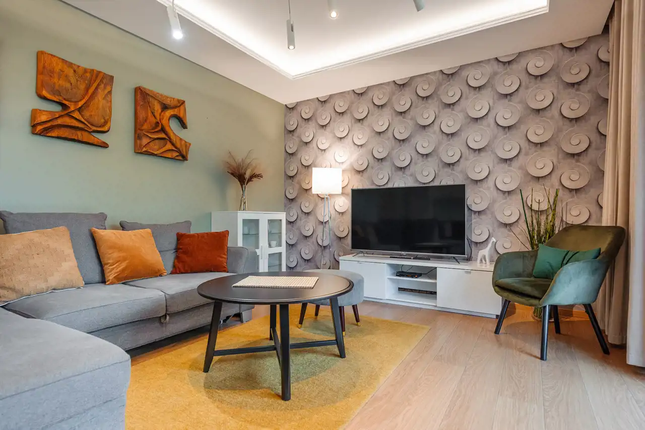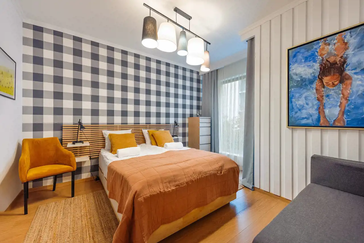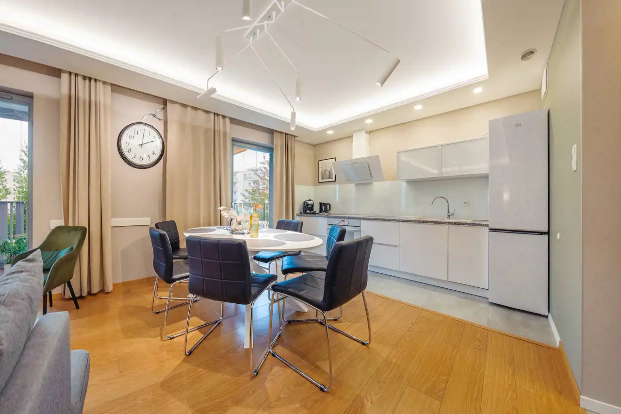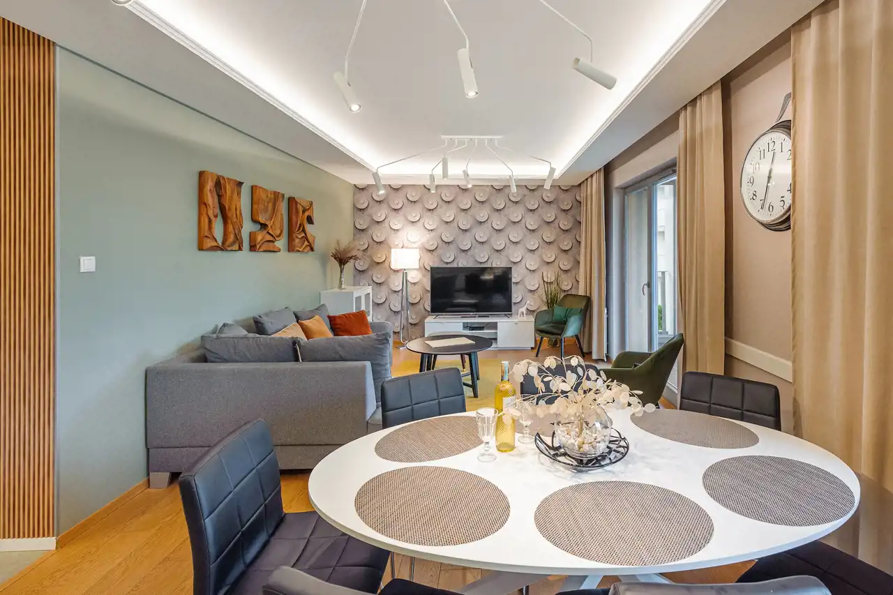Apartament jest przestronny, o znakomitym rozkładzie pomieszczeń, o pow. 75m2, o bardzo wysokim standardzie, w pełni wyposażony oraz umeblowany składający się z następujących pomieszczeń: