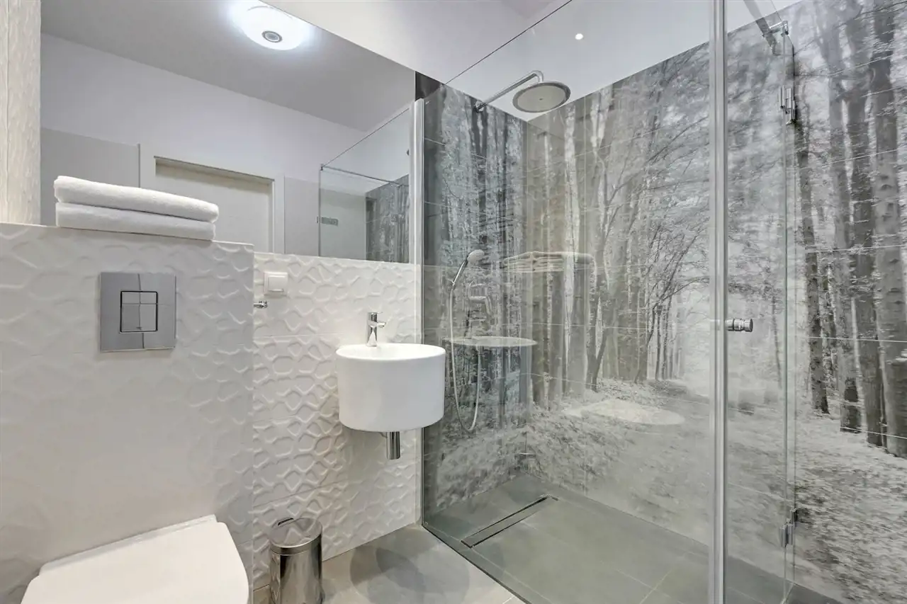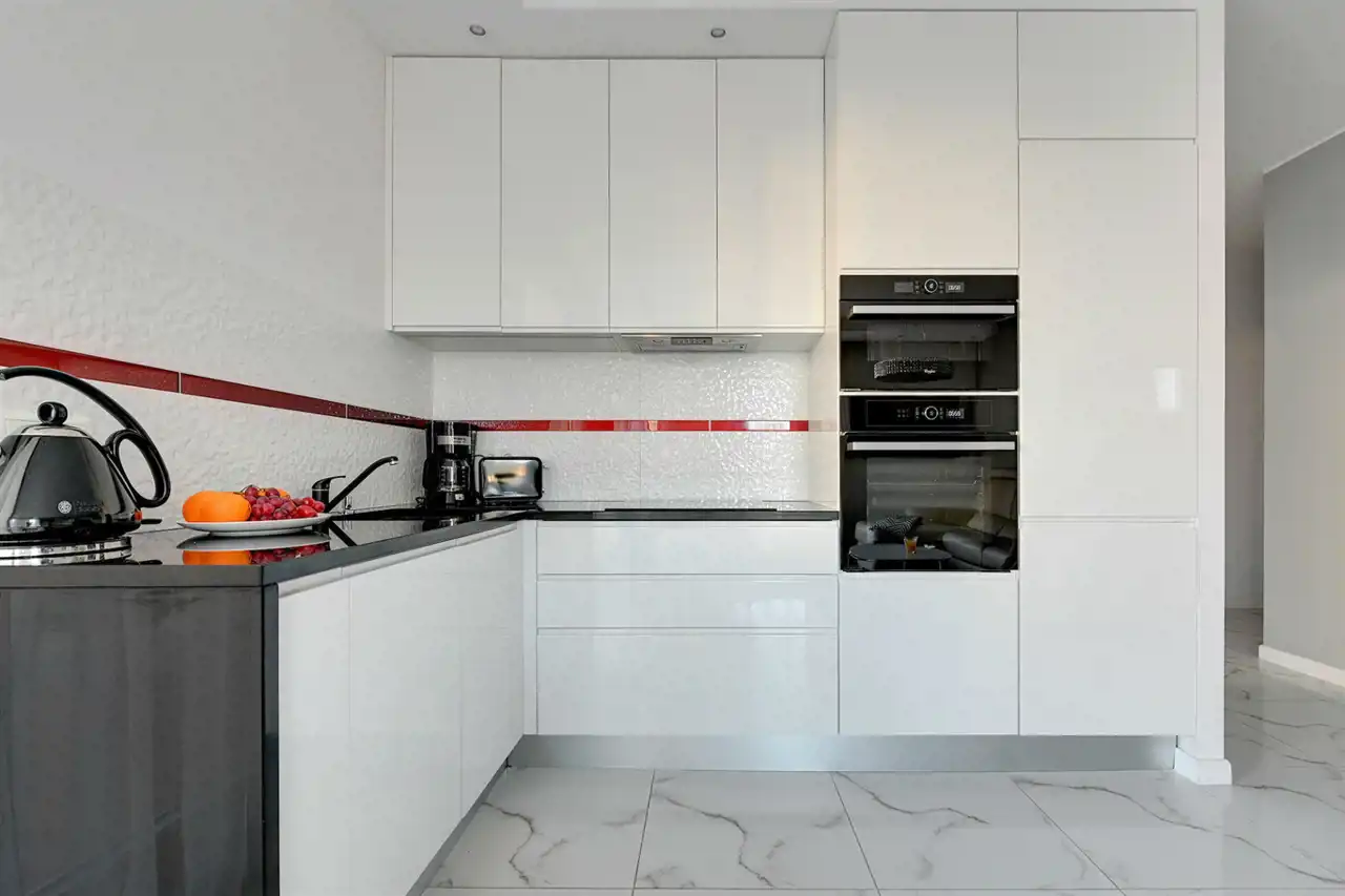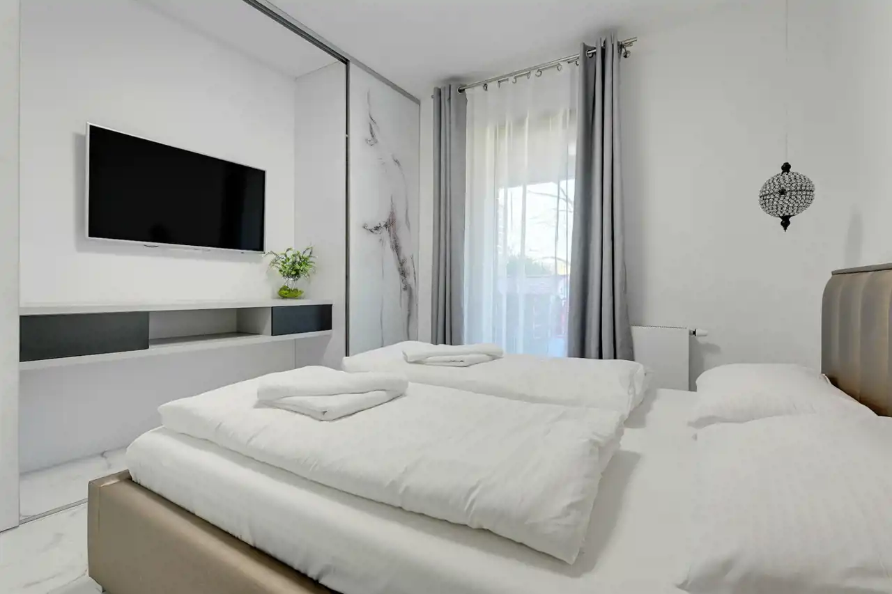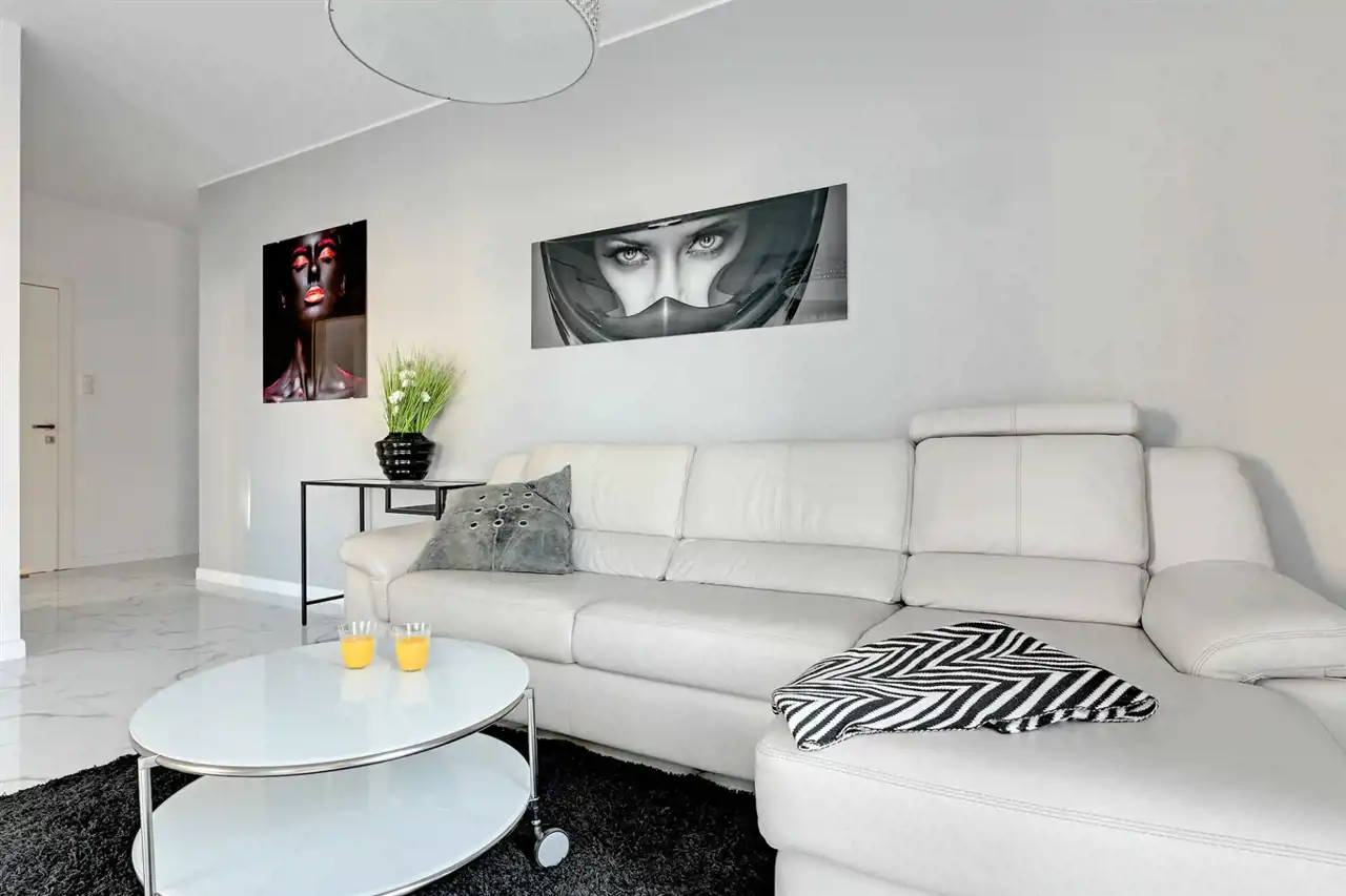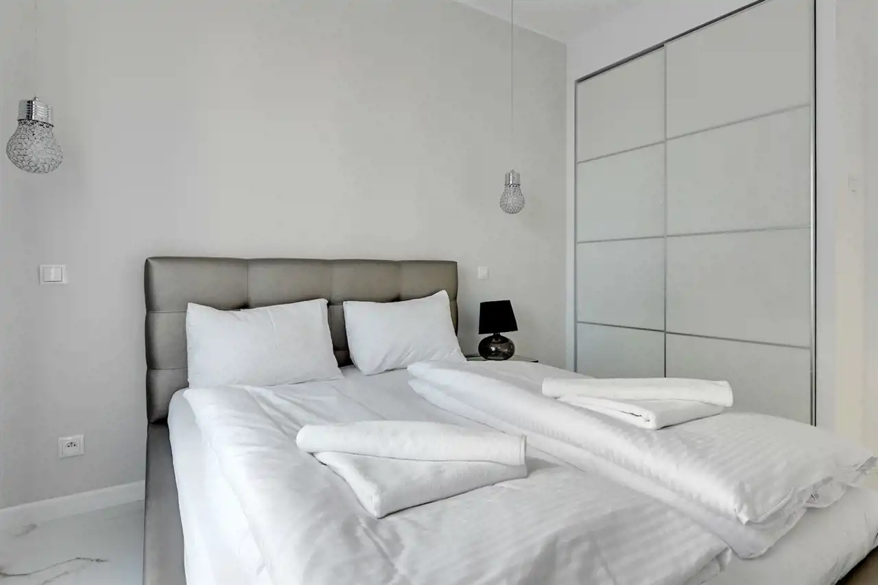 Apartament jest w pełni umeblowany o wysokim standardzie widocznym na zdjęciach.