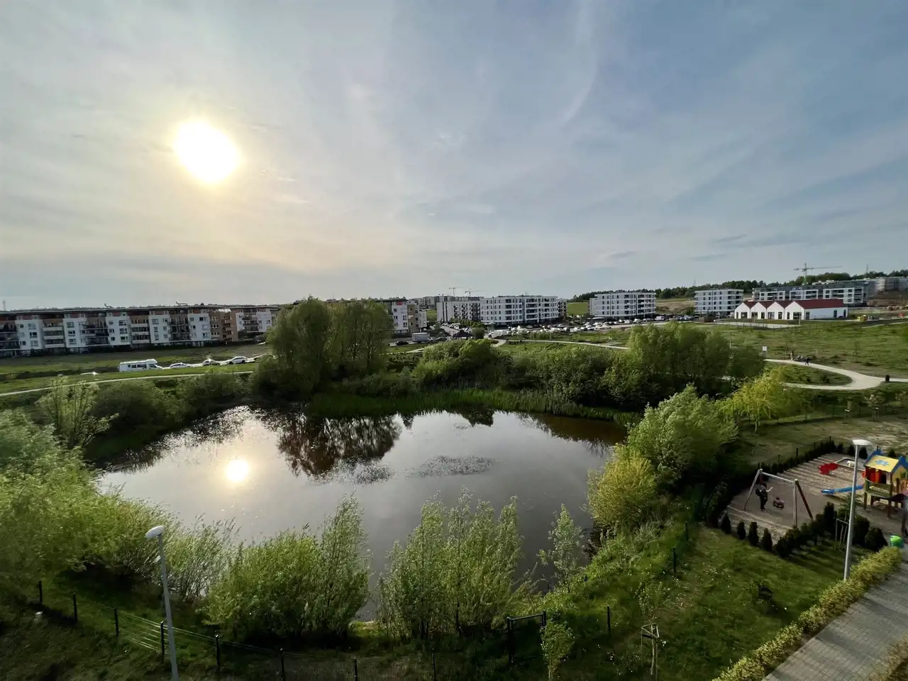 Usytuowanie na południowy-zachód dzięki czemu mieszkanie jest doskonale doświetlone w ciągu całego dnia i ciepłe zimą! Widok z okien rozpościera się z jednej strony na teren zielony, a z drugiej na staw.