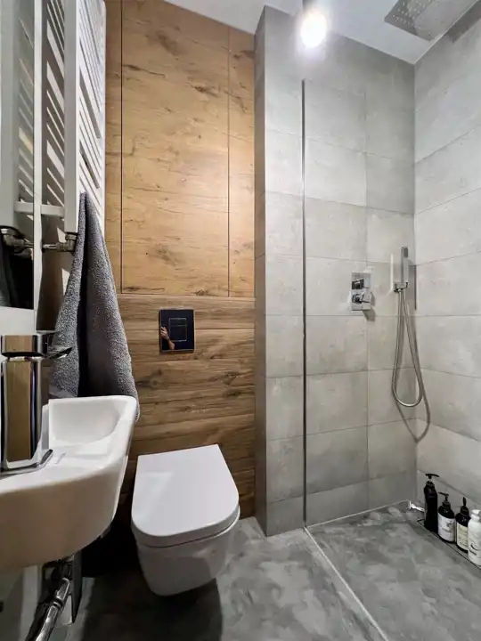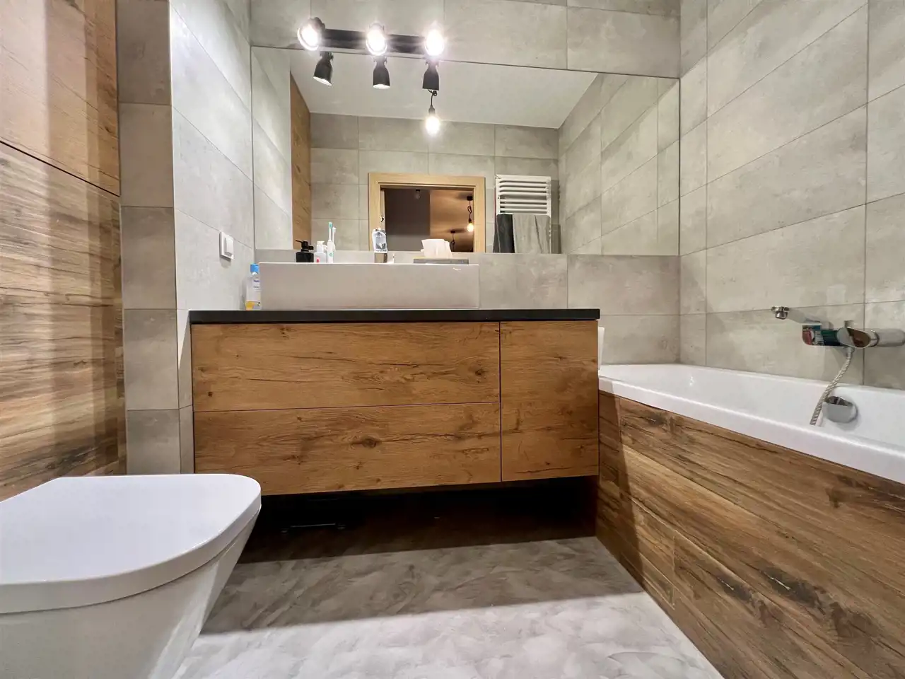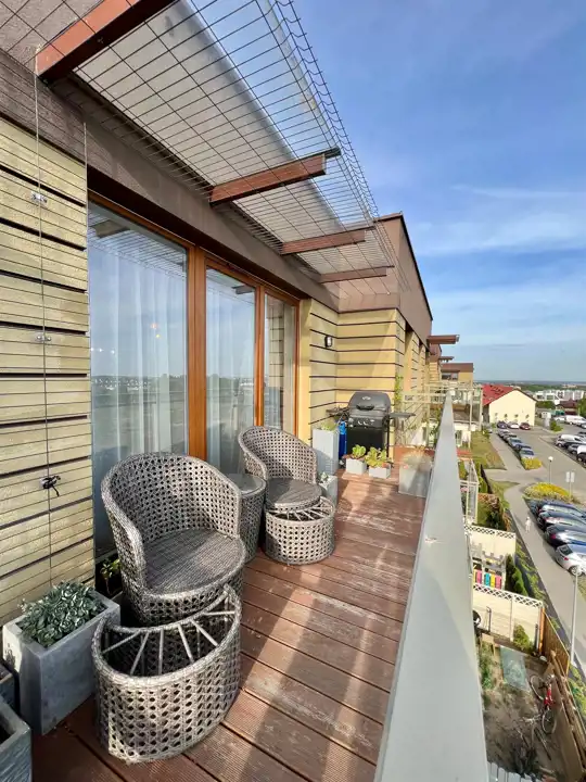 Mieszkanie posiada 2 balkony wykończone deską stanowiące przedłużenie salonu i sypialni.