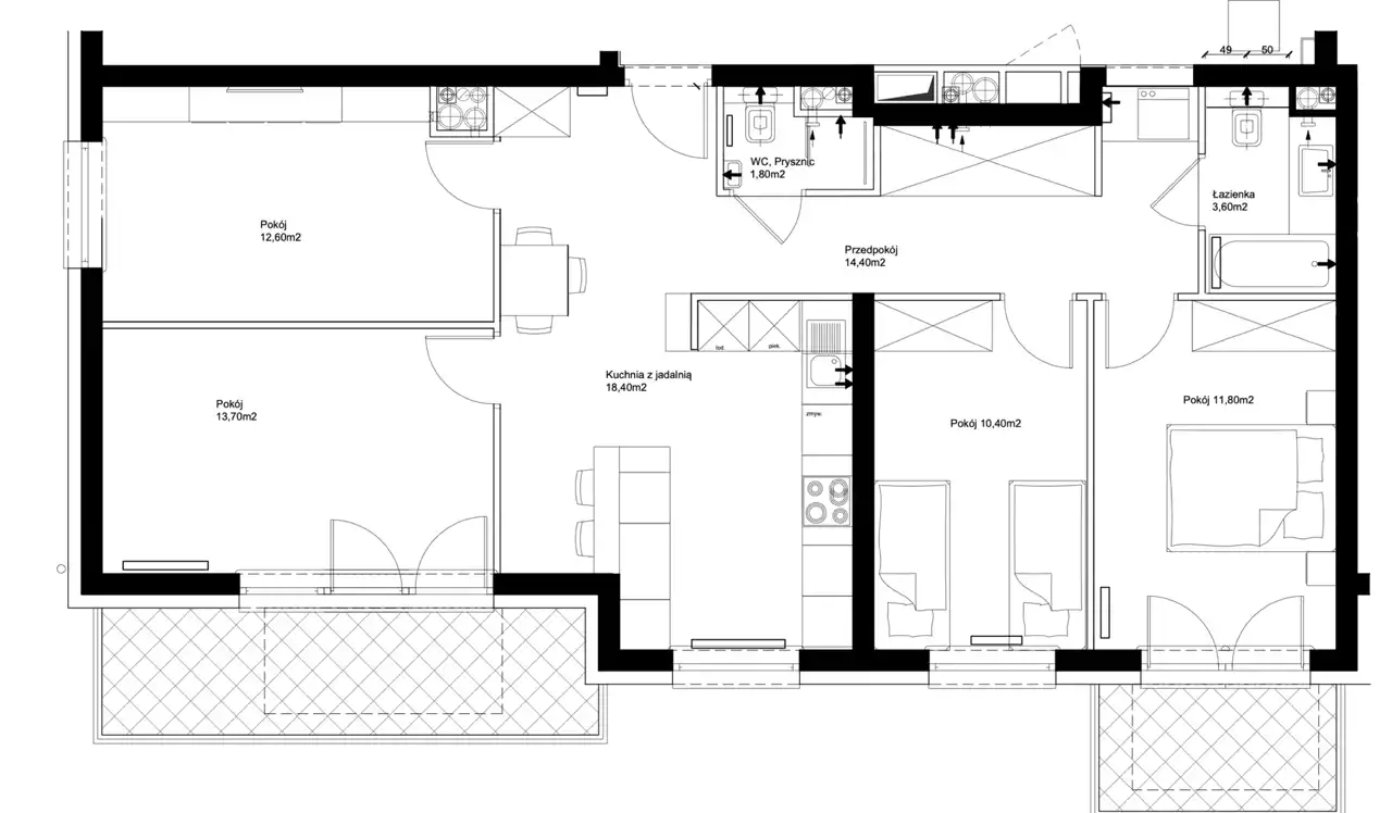 - Charakterystyka mieszkania 86 m2, 3 pokoje