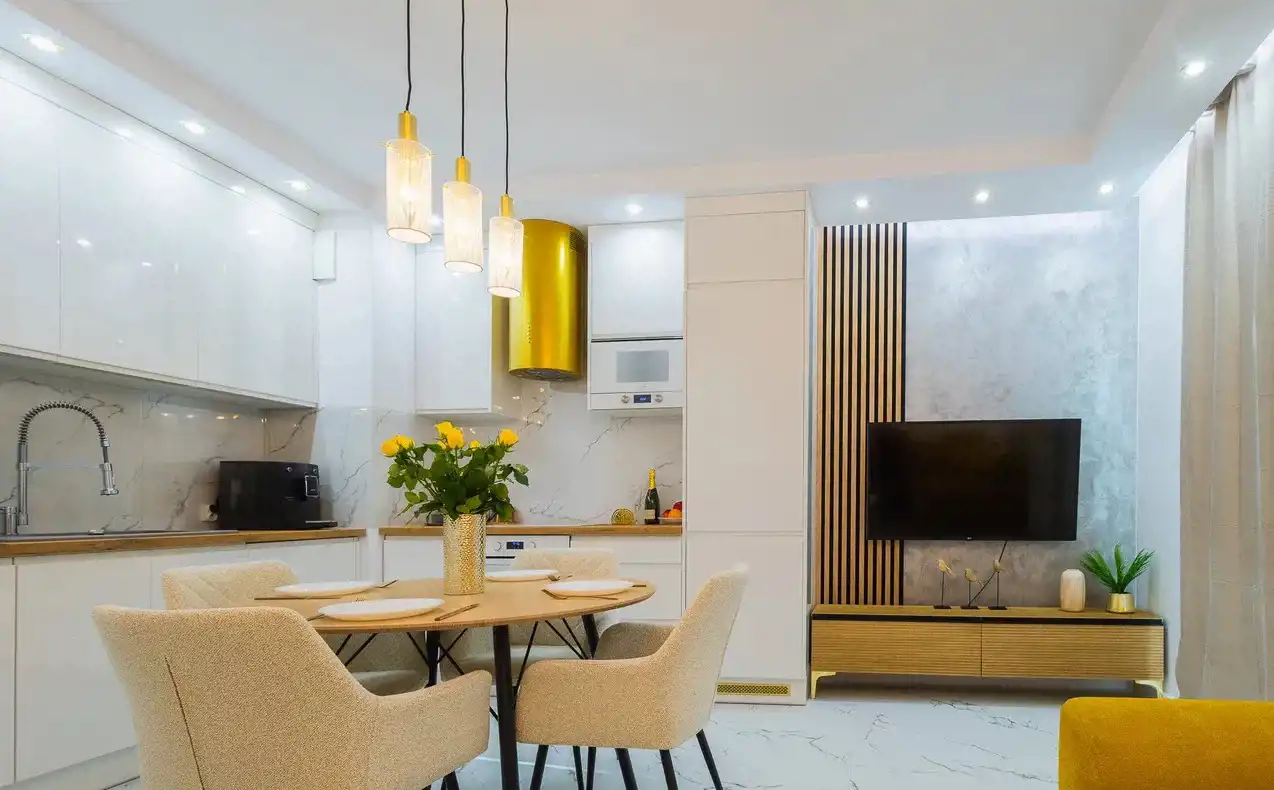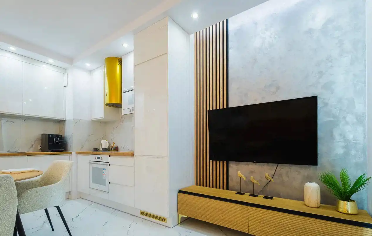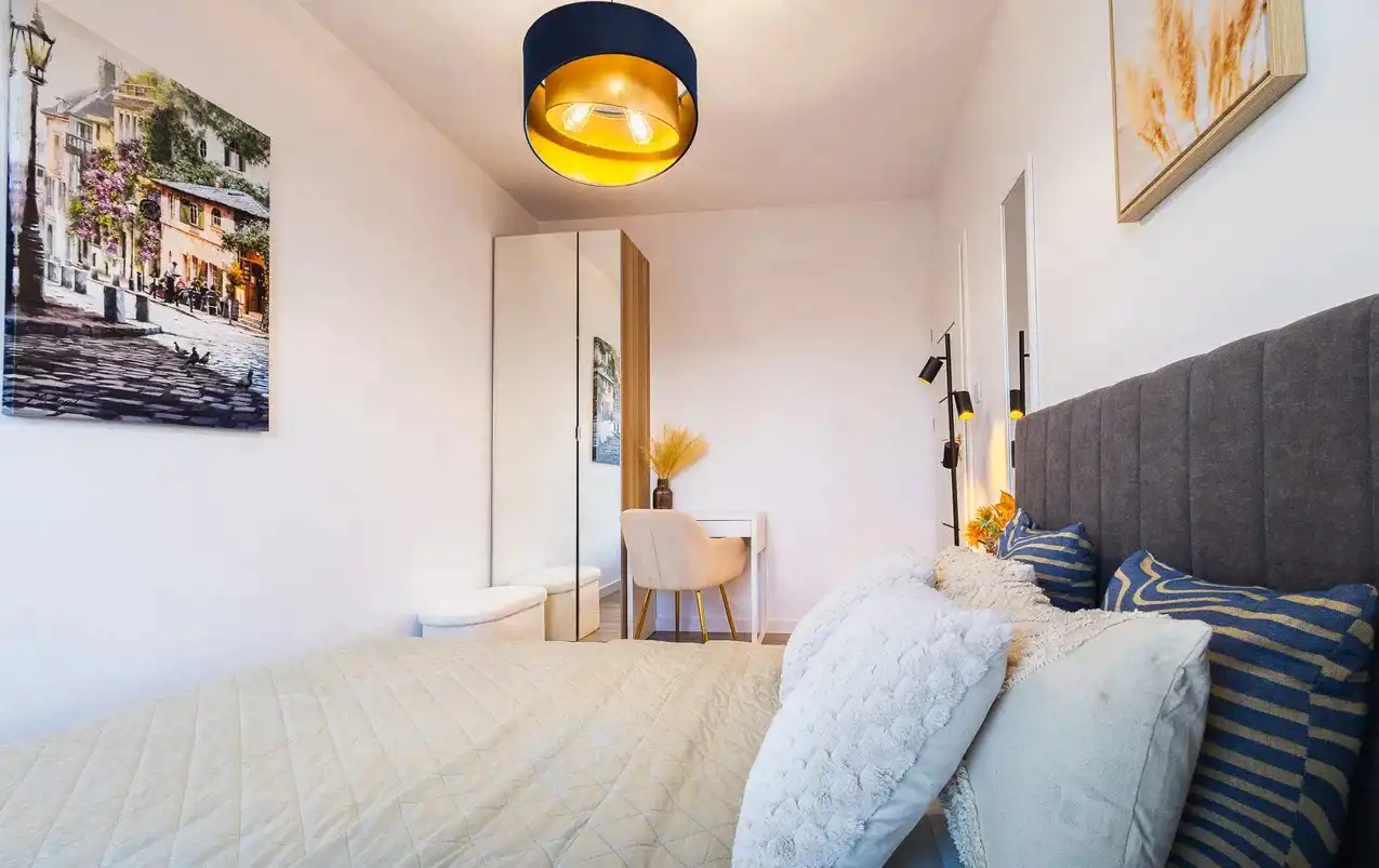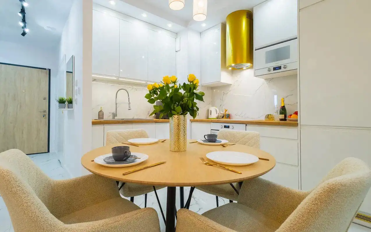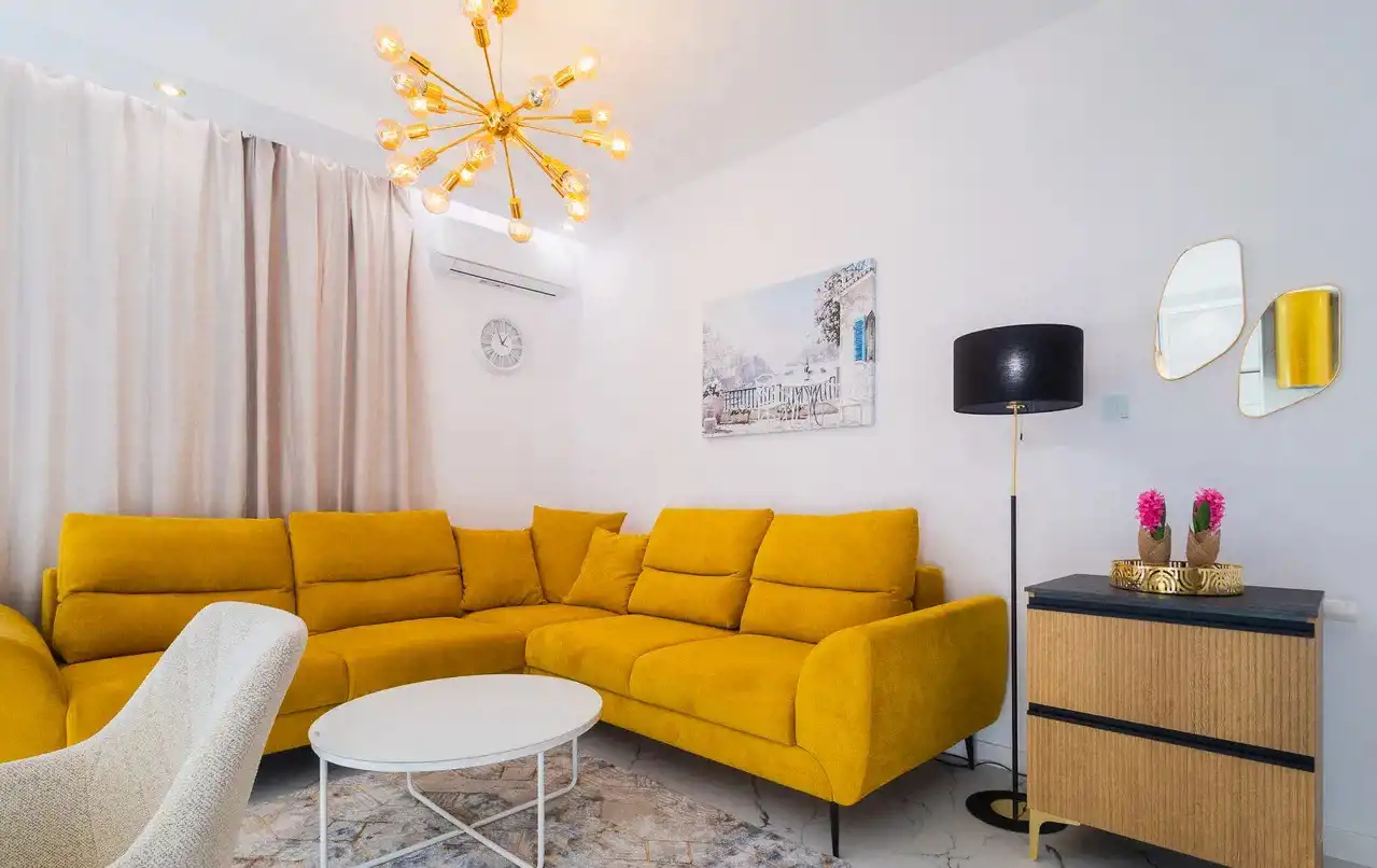• apartament w pełni urządzony i wyposażony włącznie z naczyniami i sztućcami