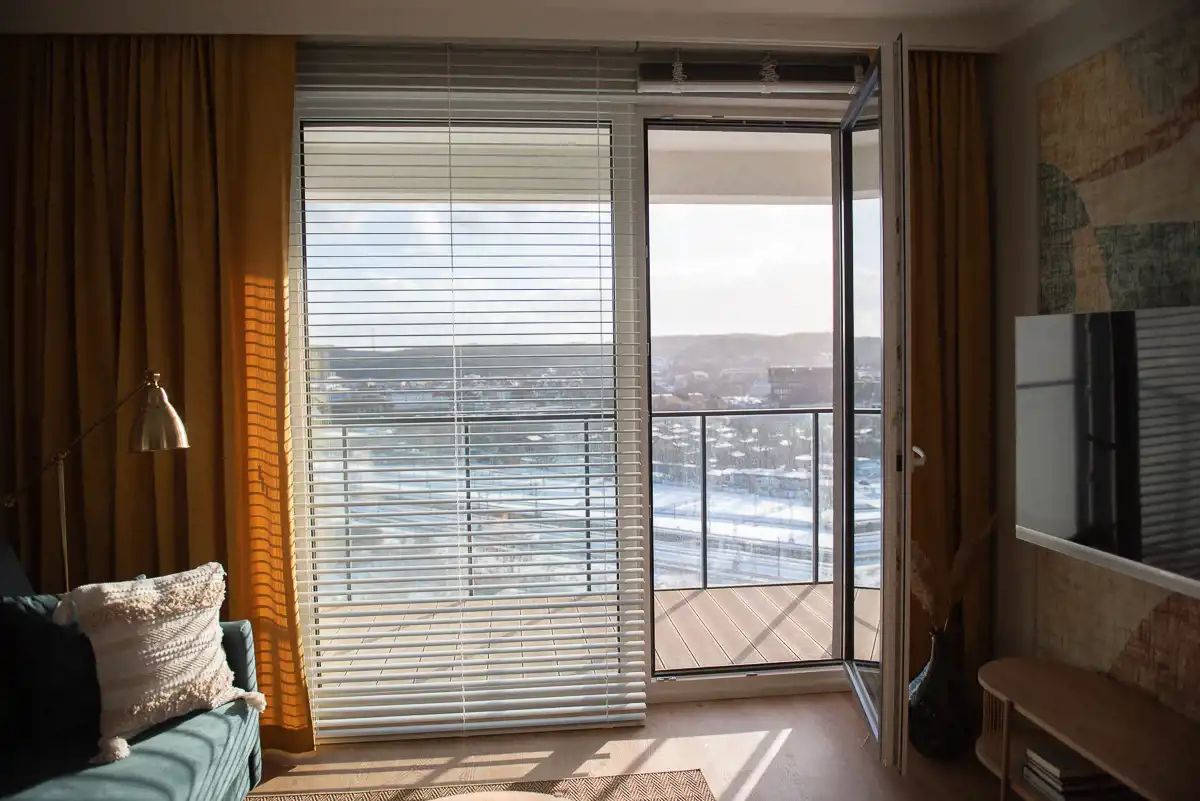 • Pięknego przestronnego balkonu z widokiem na panoramę miasta.