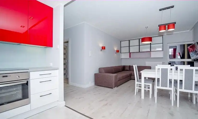 A modern apartment with an area of 65 m2 located on the 16th floor of the building, consisting of a kitchenette with a living room, two bedrooms and a bathroom with toilet. The apartment has been finished to a high standard, furnished and equipped with top-class equipment. The rooms are bright, cozy and very spacious. The great advantage of the property are two balconies, from which there is a beautiful, breathtaking view of the city panorama, the Gdańsk Bay, and in good weather also the Hel Peninsula.