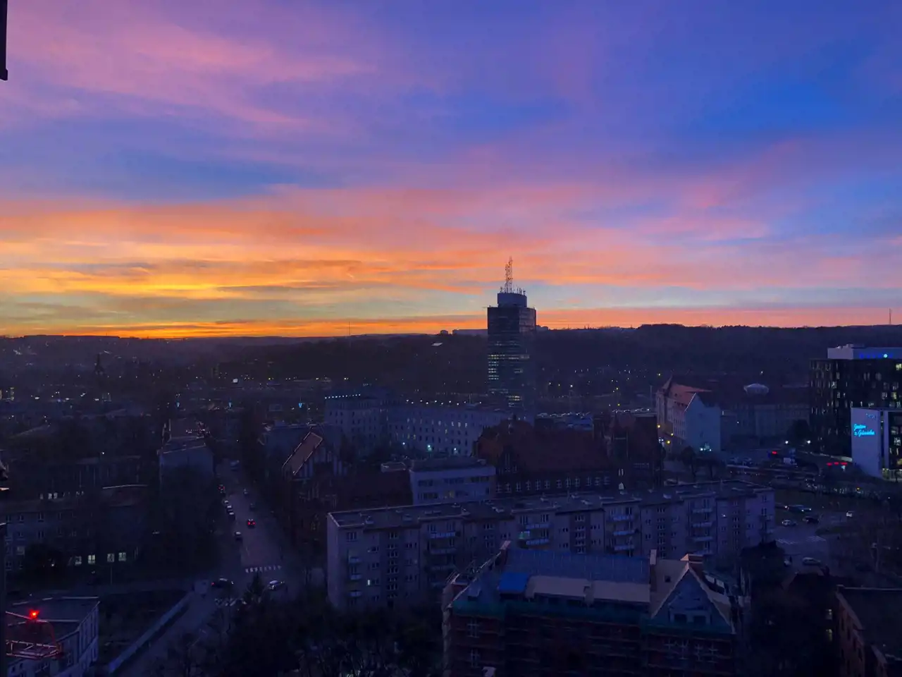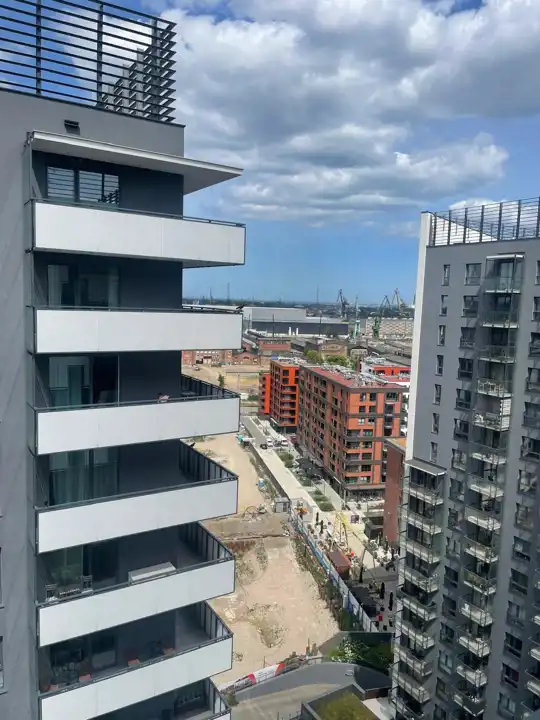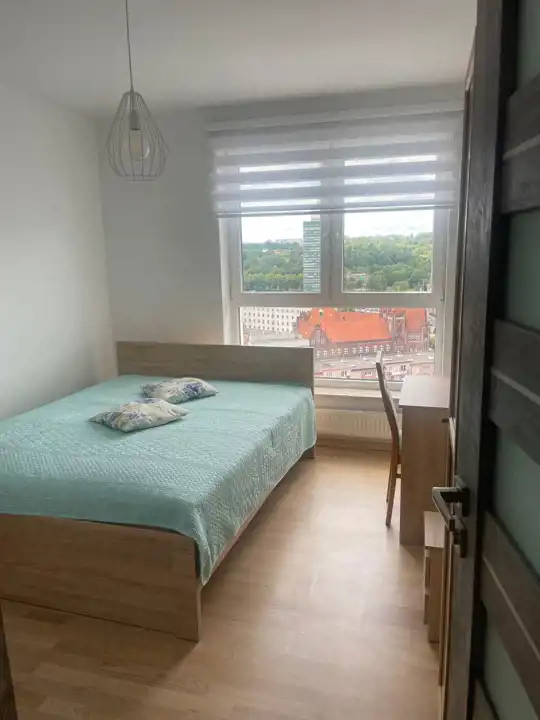 Mieszkanie znajduje się na 16 piętrze, co gwarantuje piękny widok na panoramę miasta.