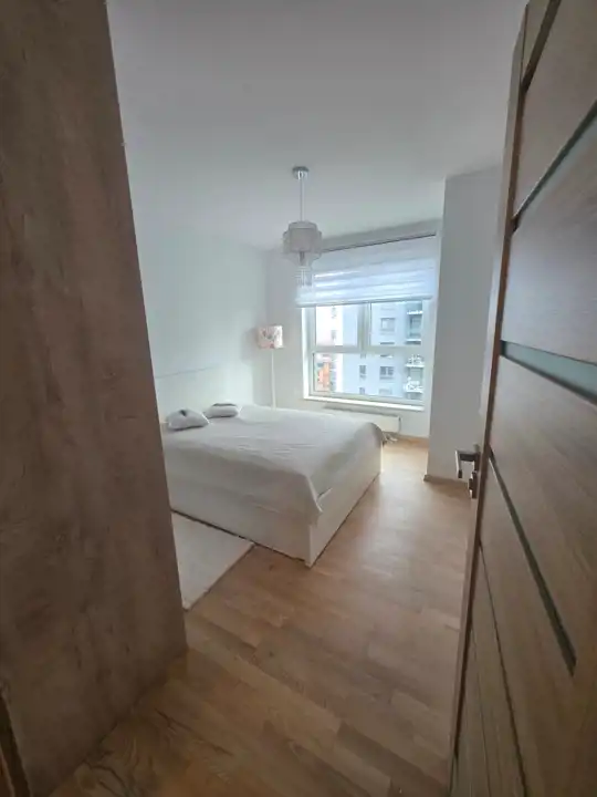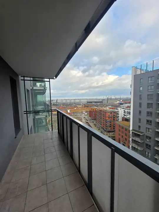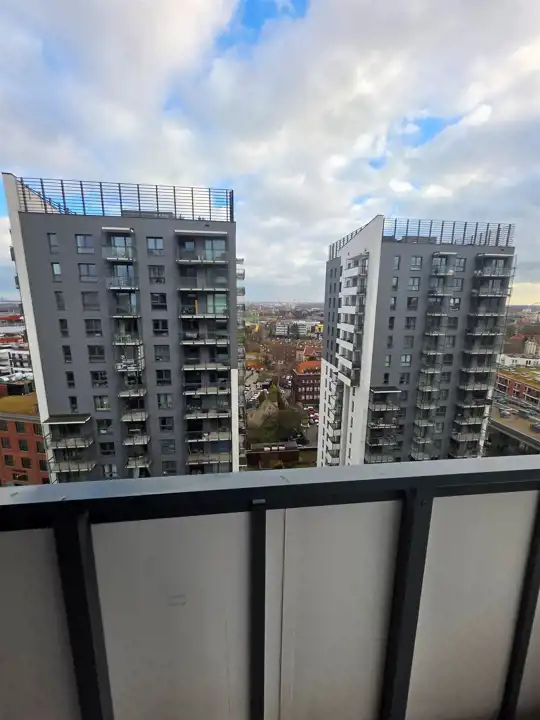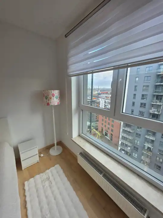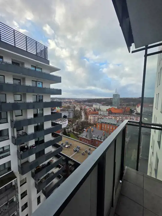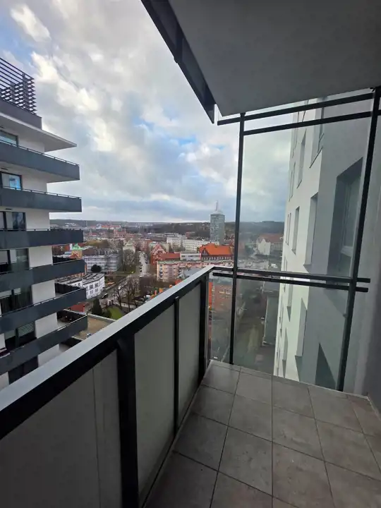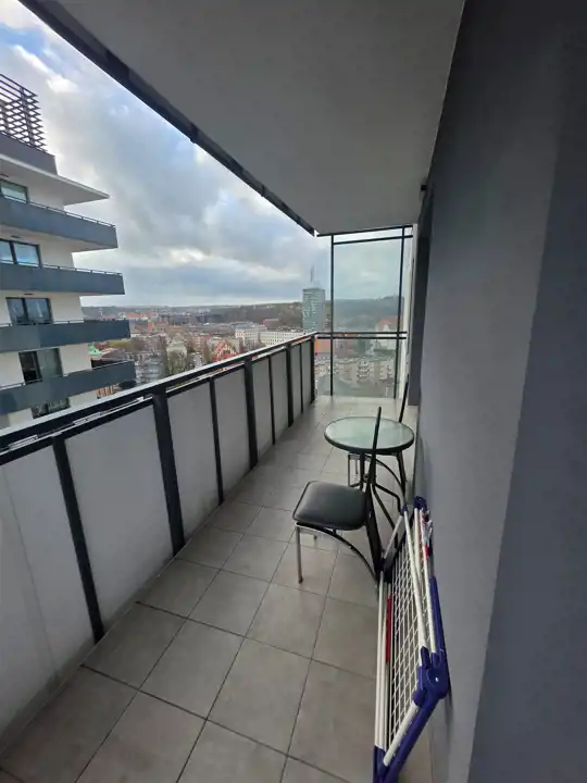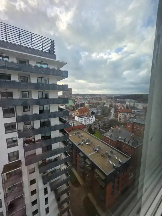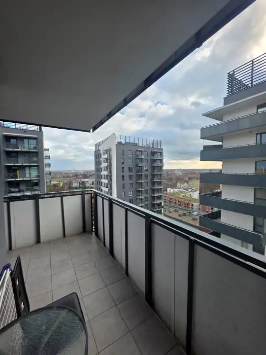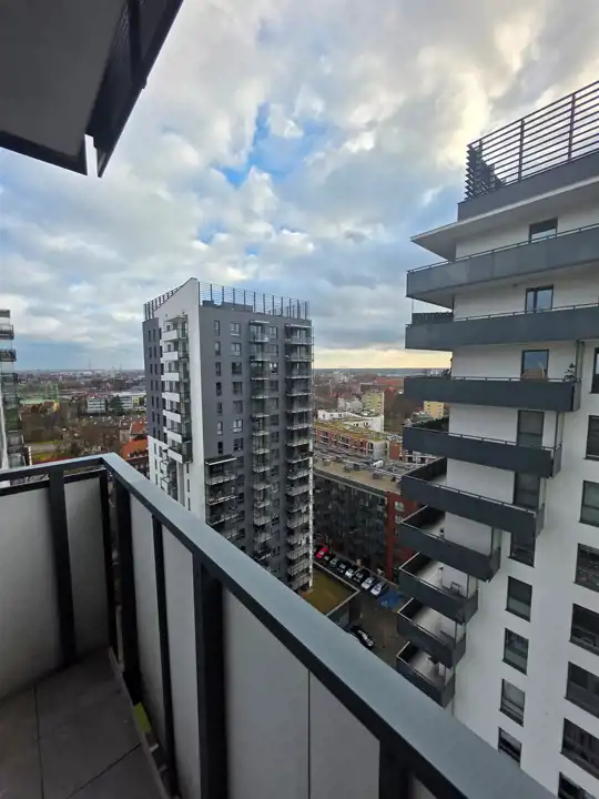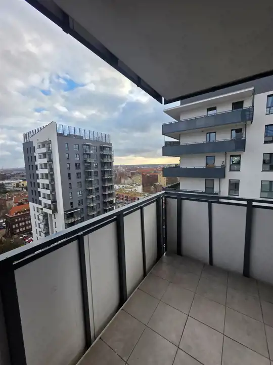 Mieszkanie znajduje się na 15 piętrze, co gwarantuje piękny widok na panoramę miasta.