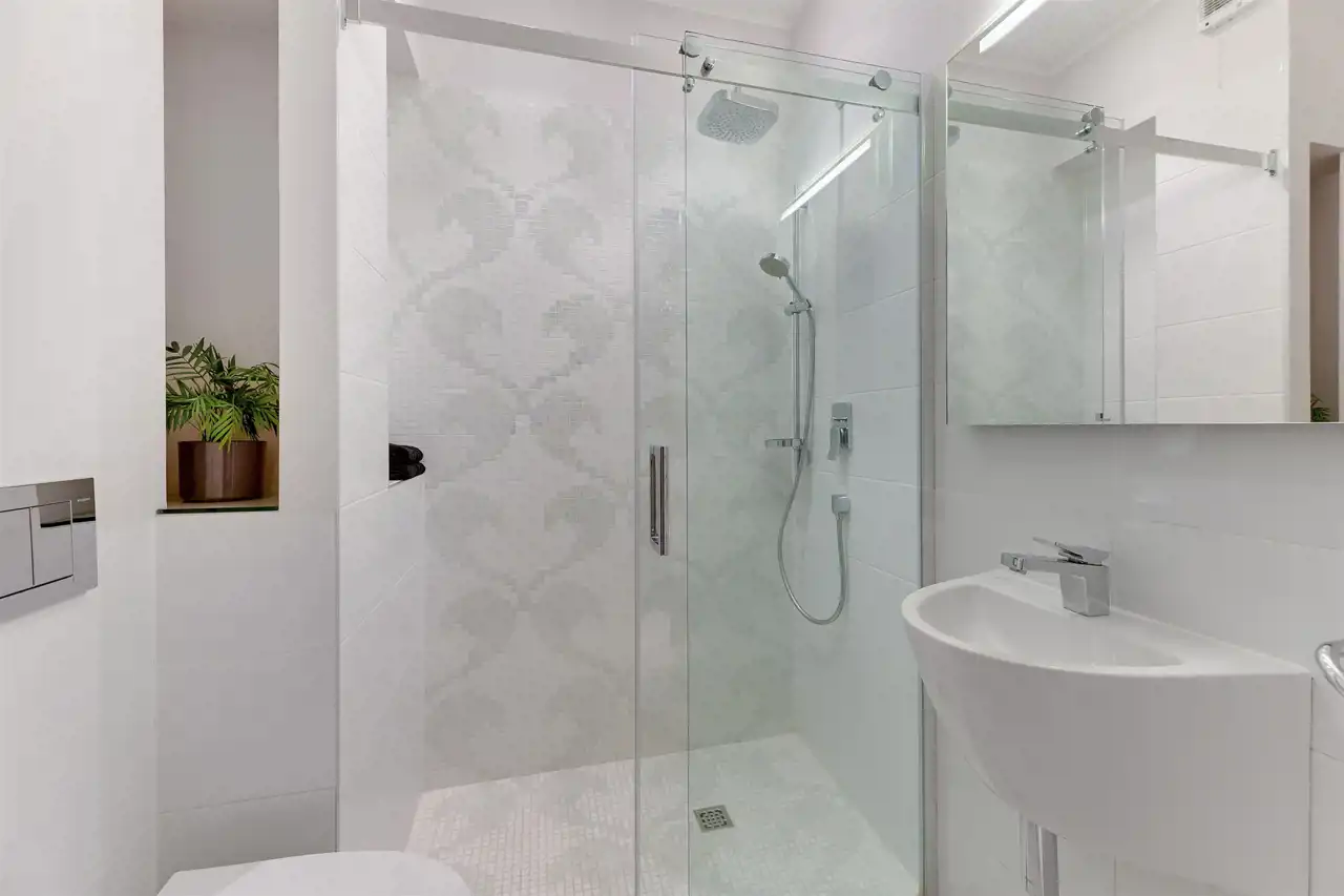 Nieruchomość znajduje się na 3 piętrze, a swoją powierzchnią 82 m2 obejmuje: salon z aneksem kuchennym, dwie sypialnie, łazienkę oraz przedpokój. Modernistyczny apartament to połączenie nowoczesnego design'u z elementami ponadczasowej klasyki. Spójny wystrój łączy wnętrze w przestronne, eleganckie mieszkanie. Przestronny salon oferuje dużą kanapę rogową stanowiącą część strefy rekreacyjnej, drewniany stół jadalniany z czterema krzesłami oraz telewizor z szafką RTV. Do salonu przynależy duży, umeblowany balkon z widokiem na rozłożyste, zielone korony drzew. Aneks kuchenny we wnęce został wykonany na wymiar i w pełni wyposażony w sprzęty wysokiej jakości. Główna sypialnia składa się na duże, małżeńskie łóżko, które szkarłatnym obiciem komplementuje wnętrze oraz wbudowaną, pojemną szafę dającą sporo miejsca do przechowywania. Druga sypialnię wyposażono w piętrowe łóżko i może posłużyć zarówno za sypialnię dla gości jak i praktyczny gabinet. Skąpana w modnych szarościach łazienka zapewnia przestronną kabinę typu walk in, umywalkę z szafką i toaletę.